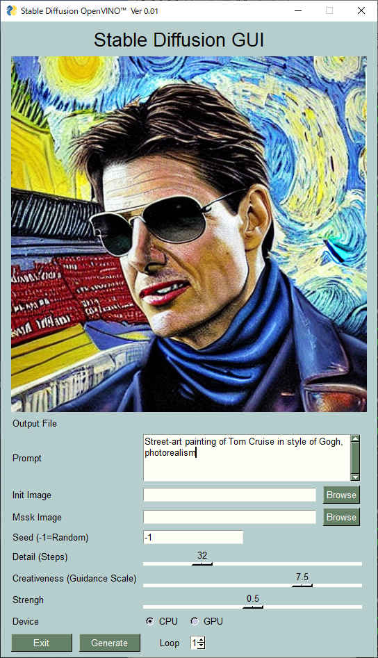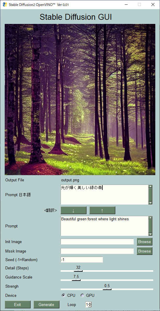 ※ CPU 動作では画像生成1枚に数分かかります
