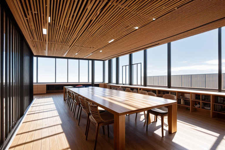 | 自然素材とモダンなデザインが調和するオフィスエントランス |