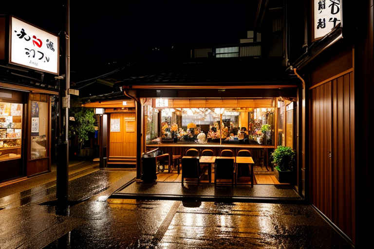 | 夕暮れの東京を一望する温もりのあるカフェ |
