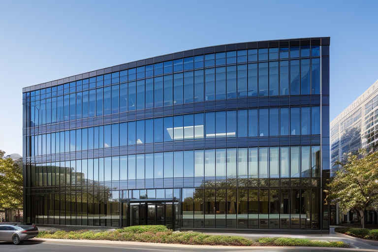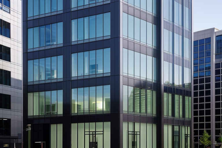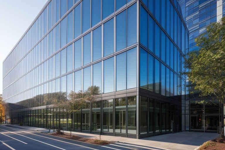 | グリッド状ガラス窓のオフィスビルのファサード |