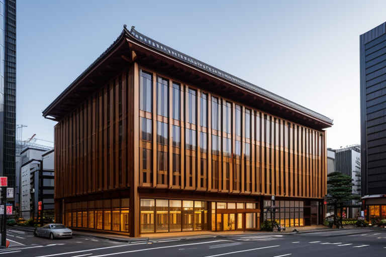 | 東京のオフィス街にある10階建て木質化テナントビル |
