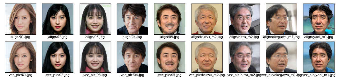 ・上段が切り出した顔画像、下段が潜在変数から生成した画像~#@title 設定