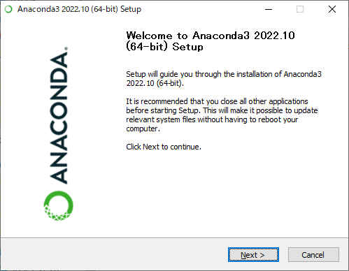 %windir%\System32\WindowsPowerShell\v1.0\powershell.exe -ExecutionPolicy ByPass -NoExit -Command "& 'C:\ProgramData\Anaconda3\shell\condabin\conda-hook.ps1' ; conda activate 'C:\Users\<User>\anaconda3' "・次のように変更 <User> = ユーザー名 C: = anaconda_winを配置したドライブ