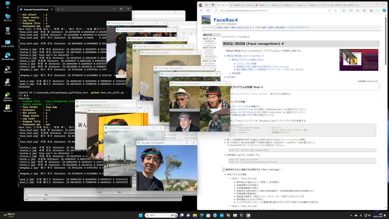 (py37y) PS > cd /anaconda_win/workspace_py37/inface (py37y) PS > python face_rec_test.py (py37y) PS > python face_rec_test1.py・カメラによるリアルタイム顔判定