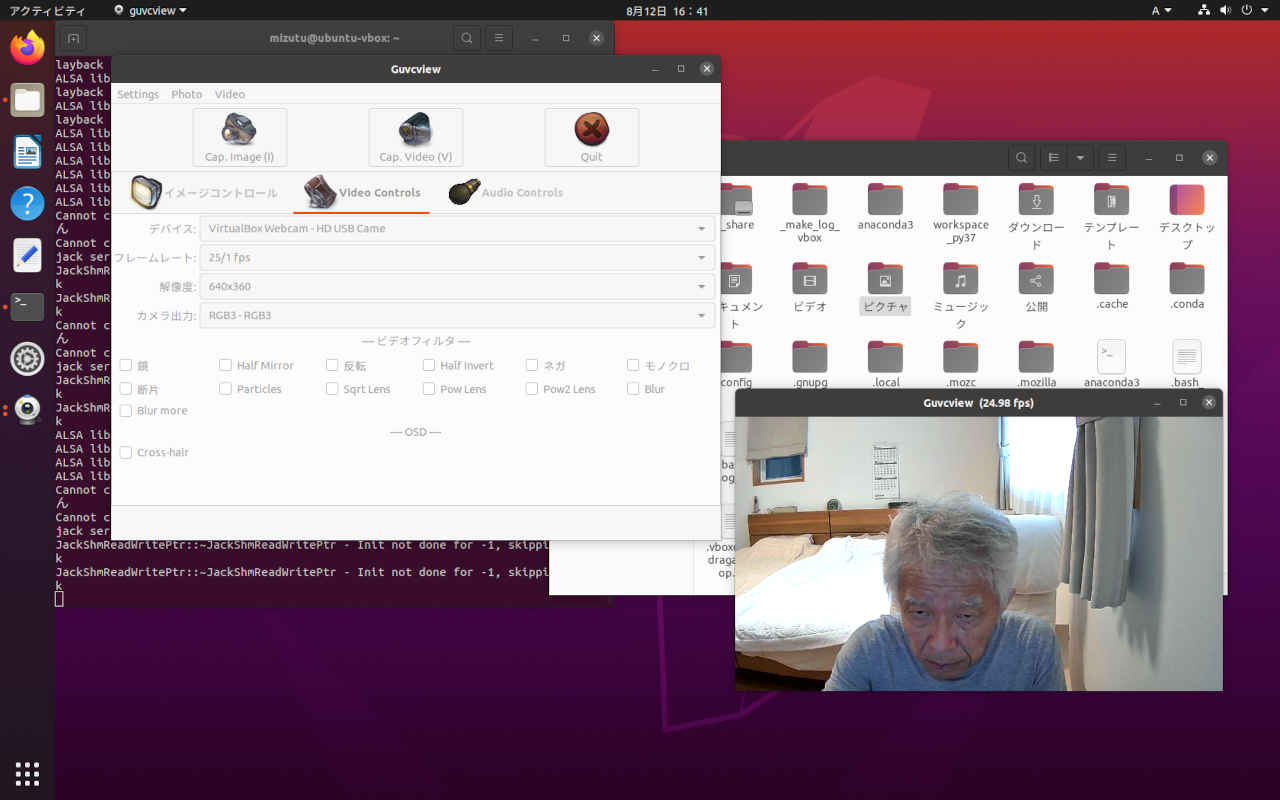 (py37) $ sudo apt install guvcview [sudo] mizutu のパスワード: パッケージリストを読み込んでいます... 完了 依存関係ツリーを作成しています 状態情報を読み取っています... 完了 以下の追加パッケージがインストールされます: libgsl23 libgslcblas0 libguvcview-2.0-2 libportaudio2 libsdl2-2.0-0 libwebcam0 uvcdynctrl uvcdynctrl-data 提案パッケージ: gsl-ref-psdoc | gsl-doc-pdf | gsl-doc-info | gsl-ref-html 以下のパッケージが新たにインストールされます: guvcview libgsl23 libgslcblas0 libguvcview-2.0-2 libportaudio2 libsdl2-2.0-0 libwebcam0 uvcdynctrl uvcdynctrl-data アップグレード: 0 個、新規インストール: 9 個、削除: 0 個、保留: 0 個。 1,706 kB のアーカイブを取得する必要があります。 この操作後に追加で 5,800 kB のディスク容量が消費されます。 続行しますか? [Y/n] y 取得:1 http://jp.archive.ubuntu.com/ubuntu focal/universe amd64 libgslcblas0 amd64 2.5+dfsg-6build1 [84.6 kB] 取得:2 http://jp.archive.ubuntu.com/ubuntu focal/universe amd64 libgsl23 amd64 2.5+dfsg-6build1 [850 kB] 取得:3 http://jp.archive.ubuntu.com/ubuntu focal/universe amd64 libportaudio2 amd64 19.6.0-1build1 [65.4 kB] 取得:4 http://jp.archive.ubuntu.com/ubuntu focal/universe amd64 libsdl2-2.0-0 amd64 2.0.10+dfsg1-3 [407 kB] 取得:5 http://jp.archive.ubuntu.com/ubuntu focal/universe amd64 libguvcview-2.0-2 amd64 2.0.6+debian-1build1 [110 kB] 取得:6 http://jp.archive.ubuntu.com/ubuntu focal/universe amd64 guvcview amd64 2.0.6+debian-1build1 [137 kB] 取得:7 http://jp.archive.ubuntu.com/ubuntu focal/universe amd64 libwebcam0 amd64 0.2.4-1.1ubuntu2 [25.3 kB] 取得:8 http://jp.archive.ubuntu.com/ubuntu focal/universe amd64 uvcdynctrl-data all 0.2.4-1.1ubuntu2 [10.1 kB] 取得:9 http://jp.archive.ubuntu.com/ubuntu focal/universe amd64 uvcdynctrl amd64 0.2.4-1.1ubuntu2 [17.7 kB] 1,706 kB を 0秒 で取得しました (7,423 kB/s) 以前に未選択のパッケージ libgslcblas0:amd64 を選択しています。 (データベースを読み込んでいます ... 現在 205652 個のファイルとディレクトリがイン ストールされています。) .../0-libgslcblas0_2.5+dfsg-6build1_amd64.deb を展開する準備をしています ... libgslcblas0:amd64 (2.5+dfsg-6build1) を展開しています... 以前に未選択のパッケージ libgsl23:amd64 を選択しています。 .../1-libgsl23_2.5+dfsg-6build1_amd64.deb を展開する準備をしています ... libgsl23:amd64 (2.5+dfsg-6build1) を展開しています... 以前に未選択のパッケージ libportaudio2:amd64 を選択しています。 .../2-libportaudio2_19.6.0-1build1_amd64.deb を展開する準備をしています ... libportaudio2:amd64 (19.6.0-1build1) を展開しています... 以前に未選択のパッケージ libsdl2-2.0-0:amd64 を選択しています。 .../3-libsdl2-2.0-0_2.0.10+dfsg1-3_amd64.deb を展開する準備をしています ... libsdl2-2.0-0:amd64 (2.0.10+dfsg1-3) を展開しています... 以前に未選択のパッケージ libguvcview-2.0-2:amd64 を選択しています。 .../4-libguvcview-2.0-2_2.0.6+debian-1build1_amd64.deb を展開する準備をしていま す ... libguvcview-2.0-2:amd64 (2.0.6+debian-1build1) を展開しています... 以前に未選択のパッケージ guvcview を選択しています。 .../5-guvcview_2.0.6+debian-1build1_amd64.deb を展開する準備をしています ... guvcview (2.0.6+debian-1build1) を展開しています... 以前に未選択のパッケージ libwebcam0 を選択しています。 .../6-libwebcam0_0.2.4-1.1ubuntu2_amd64.deb を展開する準備をしています ... libwebcam0 (0.2.4-1.1ubuntu2) を展開しています... 以前に未選択のパッケージ uvcdynctrl-data を選択しています。 .../7-uvcdynctrl-data_0.2.4-1.1ubuntu2_all.deb を展開する準備をしています ... uvcdynctrl-data (0.2.4-1.1ubuntu2) を展開しています... 以前に未選択のパッケージ uvcdynctrl を選択しています。 .../8-uvcdynctrl_0.2.4-1.1ubuntu2_amd64.deb を展開する準備をしています ... uvcdynctrl (0.2.4-1.1ubuntu2) を展開しています... libportaudio2:amd64 (19.6.0-1build1) を設定しています ... libgslcblas0:amd64 (2.5+dfsg-6build1) を設定しています ... uvcdynctrl-data (0.2.4-1.1ubuntu2) を設定しています ... libgsl23:amd64 (2.5+dfsg-6build1) を設定しています ... libwebcam0 (0.2.4-1.1ubuntu2) を設定しています ... libsdl2-2.0-0:amd64 (2.0.10+dfsg1-3) を設定しています ... libguvcview-2.0-2:amd64 (2.0.6+debian-1build1) を設定しています ... uvcdynctrl (0.2.4-1.1ubuntu2) を設定しています ... guvcview (2.0.6+debian-1build1) を設定しています ... mime-support (3.64ubuntu1) のトリガを処理しています ... gnome-menus (3.36.0-1ubuntu1) のトリガを処理しています ... libc-bin (2.31-0ubuntu9.2) のトリガを処理しています ... man-db (2.9.1-1) のトリガを処理しています ... desktop-file-utils (0.24-1ubuntu3) のトリガを処理しています ...