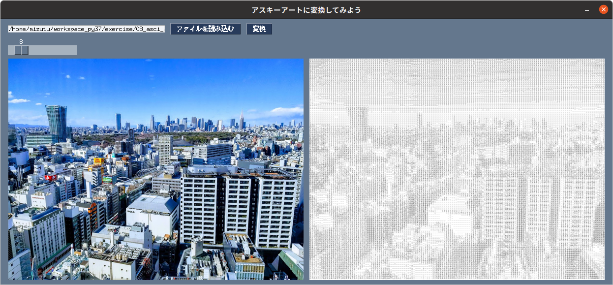 window = sg.Window('アスキーアートに変換してみよう', layout, return_keyboard_events=True,