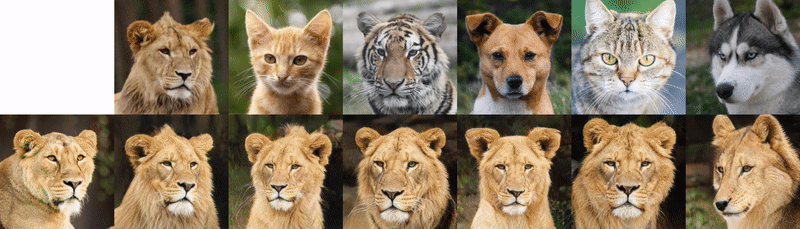 bash download.sh pretrained-network-celeba-hq bash download.sh wing・「AFHQ.」(動物の顔)