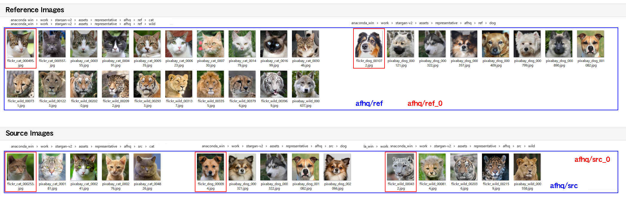bash download.sh pretrained-network-afhq※ windows では「bash」コマンドが使えないので Linux で実行してできたファイルを配置して使用
