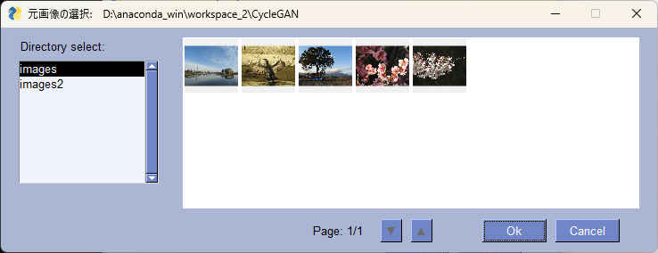 (py38_learn) python test2.py CycleGan test program Ver. 0.01: Starting application... - dataroot : C:/anaconda_win/workspace_2/CycleGAN/images - source_dir : C:/anaconda_win/workspace_2/CycleGAN/images - result_path : ./results/result.png - load_size : 1024 <style_ukiyoe_pretrained> result images → ./results/style_ukiyoe_pretrained processing (0000)-th image... C:/anaconda_win/workspace_2/CycleGAN/images/20210117_091324_001m.jpg processing (0001)-th image... C:/anaconda_win/workspace_2/CycleGAN/images/20210121_082725_001m.jpg processing (0002)-th image... C:/anaconda_win/workspace_2/CycleGAN/images/20210130_073729_001m.jpg processing (0003)-th image... C:/anaconda_win/workspace_2/CycleGAN/images/20210221_082254_001m.jpg processing (0004)-th image... C:/anaconda_win/workspace_2/CycleGAN/images/20210329_101513_001m.jpg <style_monet_pretrained> result images → ./results/style_monet_pretrained processing (0000)-th image... C:/anaconda_win/workspace_2/CycleGAN/images/20210117_091324_001m.jpg processing (0001)-th image... C:/anaconda_win/workspace_2/CycleGAN/images/20210121_082725_001m.jpg processing (0002)-th image... C:/anaconda_win/workspace_2/CycleGAN/images/20210130_073729_001m.jpg processing (0003)-th image... C:/anaconda_win/workspace_2/CycleGAN/images/20210221_082254_001m.jpg processing (0004)-th image... C:/anaconda_win/workspace_2/CycleGAN/images/20210329_101513_001m.jpg <style_cezanne_pretrained> result images → ./results/style_cezanne_pretrained processing (0000)-th image... C:/anaconda_win/workspace_2/CycleGAN/images/20210117_091324_001m.jpg processing (0001)-th image... C:/anaconda_win/workspace_2/CycleGAN/images/20210121_082725_001m.jpg processing (0002)-th image... C:/anaconda_win/workspace_2/CycleGAN/images/20210130_073729_001m.jpg processing (0003)-th image... C:/anaconda_win/workspace_2/CycleGAN/images/20210221_082254_001m.jpg processing (0004)-th image... C:/anaconda_win/workspace_2/CycleGAN/images/20210329_101513_001m.jpg <style_vangogh_pretrained> result images → ./results/style_vangogh_pretrained processing (0000)-th image... C:/anaconda_win/workspace_2/CycleGAN/images/20210117_091324_001m.jpg processing (0001)-th image... C:/anaconda_win/workspace_2/CycleGAN/images/20210121_082725_001m.jpg processing (0002)-th image... C:/anaconda_win/workspace_2/CycleGAN/images/20210130_073729_001m.jpg processing (0003)-th image... C:/anaconda_win/workspace_2/CycleGAN/images/20210221_082254_001m.jpg processing (0004)-th image... C:/anaconda_win/workspace_2/CycleGAN/images/20210329_101513_001m.jpg processing start >> 2024/08/03 15:47:21 processing end >> 2024/08/03 15:47:32 processing time >> 0:00:11.018841 Finished.・CPU 動作の場合の処理時間(オプション: --gpu_id -1)