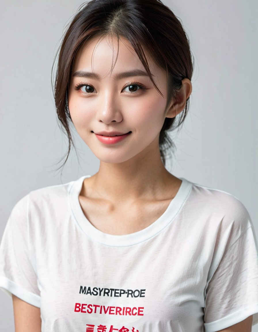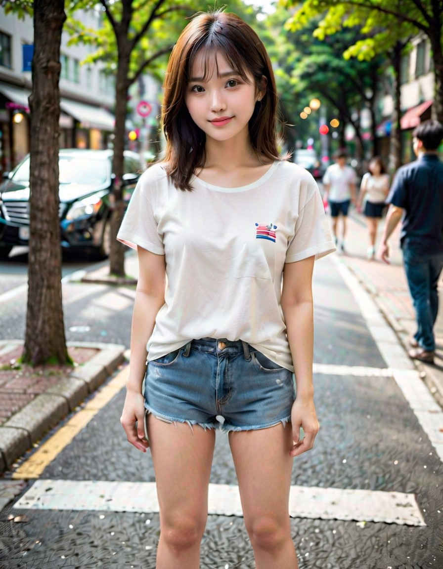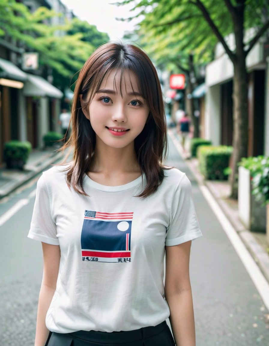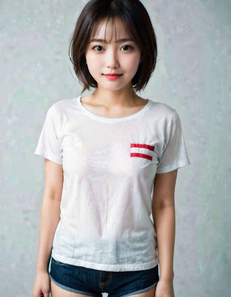 | (8k、最高品質、傑作、超高解像度:1.2)、日本人女性の写真、20 歳、T シャツ、笑顔、太ももに焦点を当て、立っています <lora:ayame_LoRA_v20:1.0> |