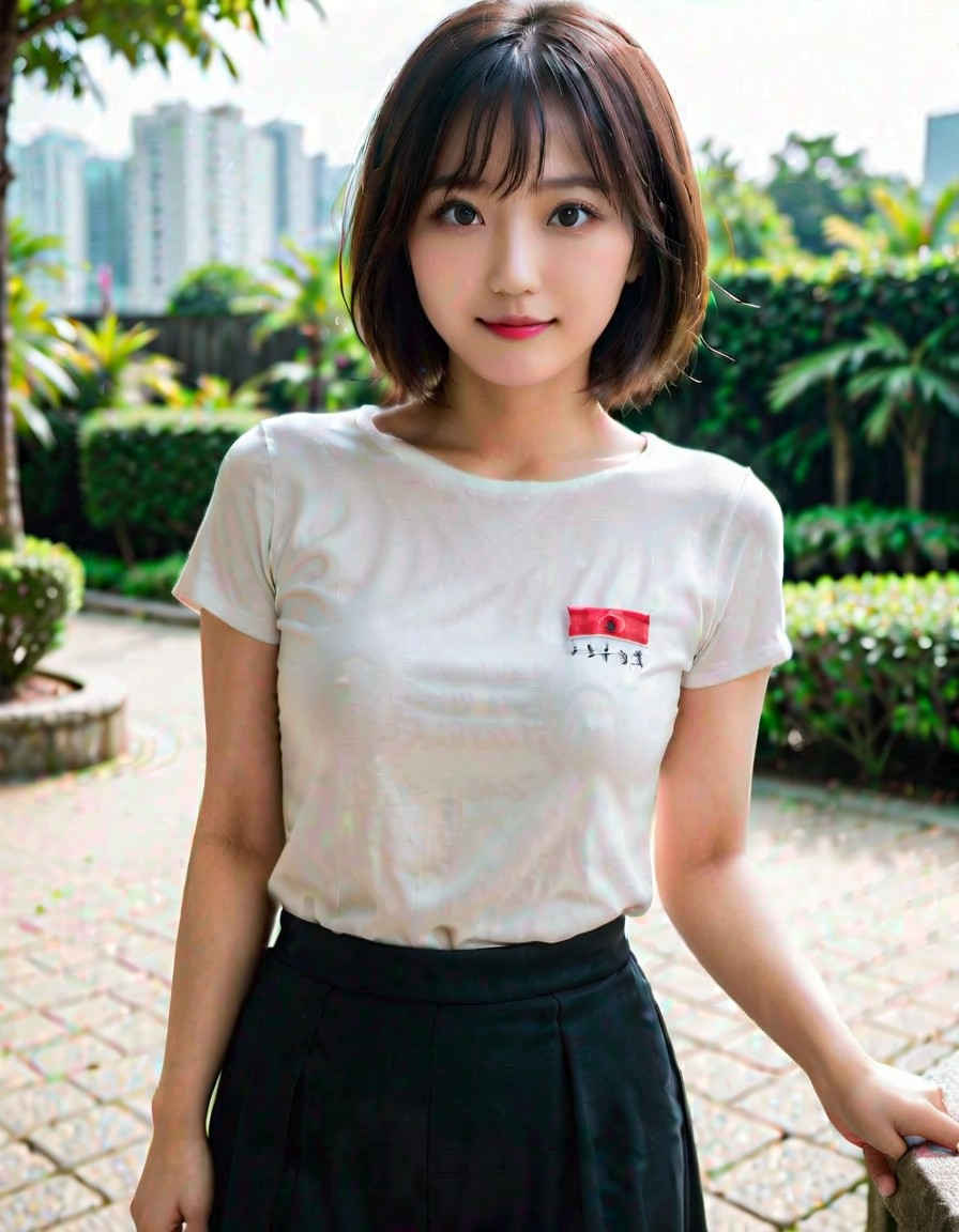 | (8k, best quality, masterpiece, ultra highres:1.2),photo of japanese woman, 20yo, t-shirt, smile, thigh focus, standing <lora:ayame_LoRA_v20:1.0> | |