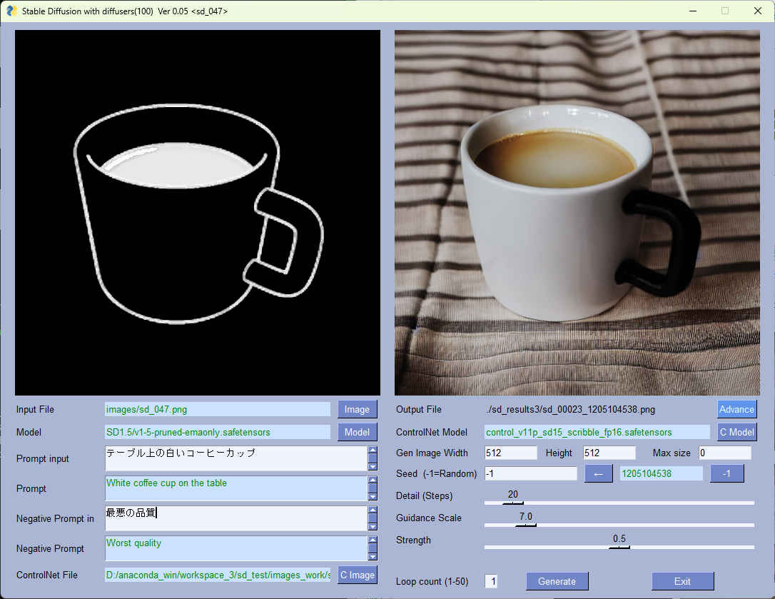 | 43 | 「controlnet_conditioning_scale」パラメータによる変化 | sd_043.py | 00:06 | 00:12 | 00:24 | 00:31 | 04:56 | 17:01 |