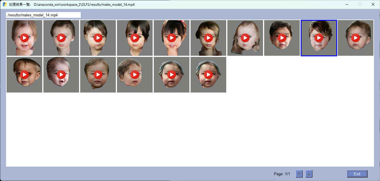 my_thumbnail.file_dialog(file_path=args.result_image, title=msg, theme=DEF_THEME, xn=10, yn=4, thumb_size=128, gap=4, ret='Exit', logger=logger)