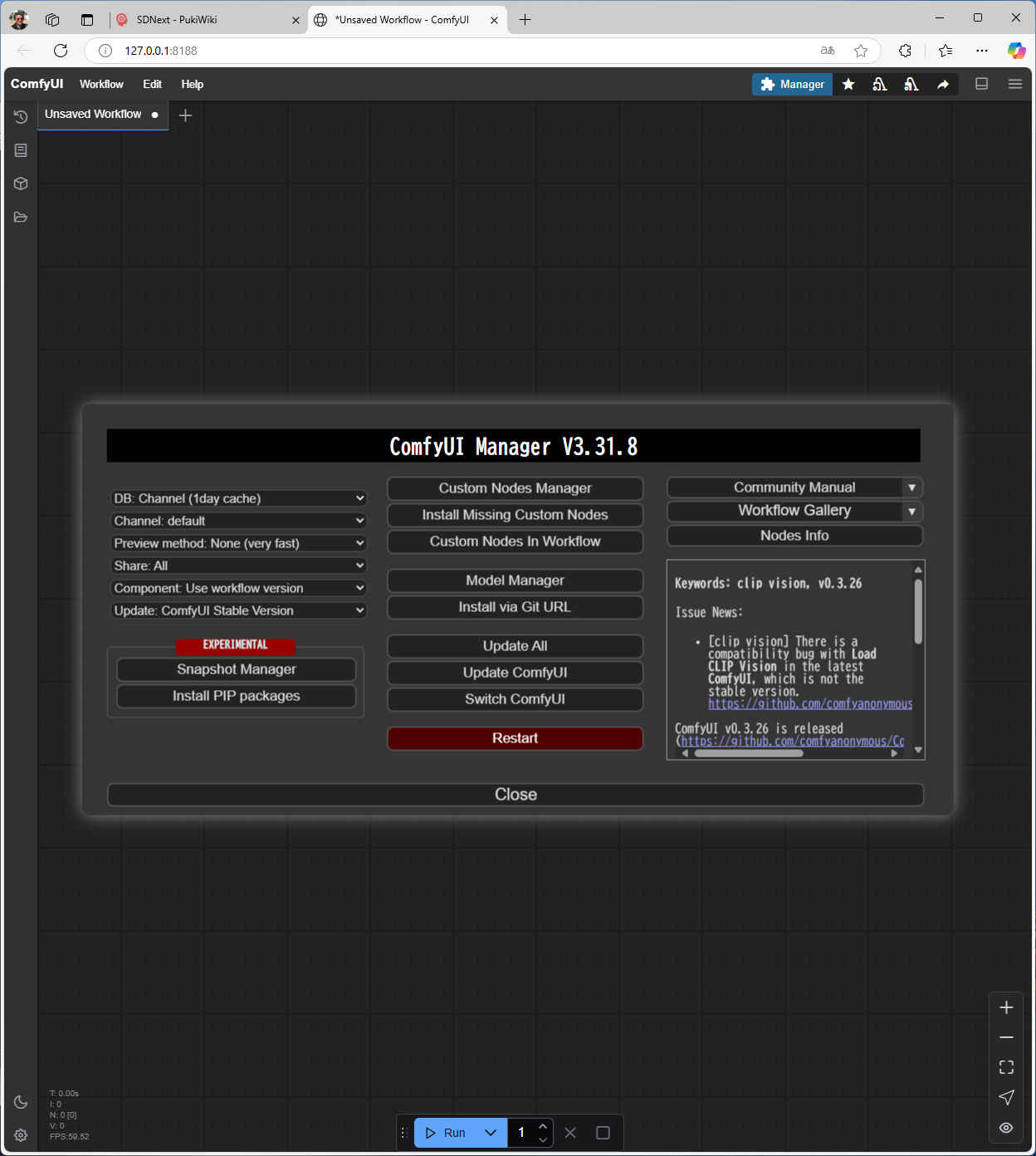 - 必須のパッケージ「ComfyUI Manager」をインストールする