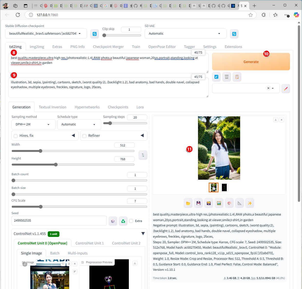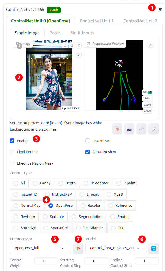 ⑥ OpenPose のモデルを確認(Control Type と一致させること)