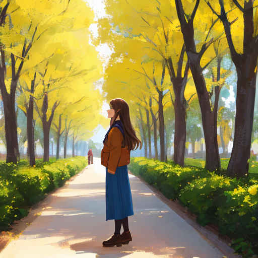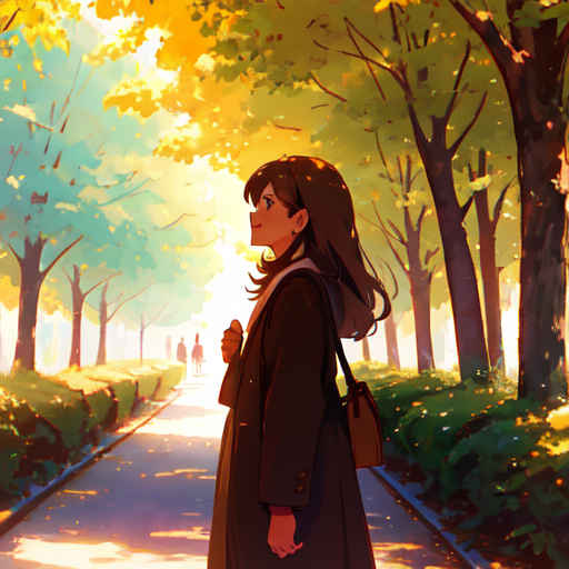| プロフィール写真、女性 1 人、立っている、中年、幸せ、長い茶色の髪、外側、日当たりの良い公園、木、背景、デジタル アート | |