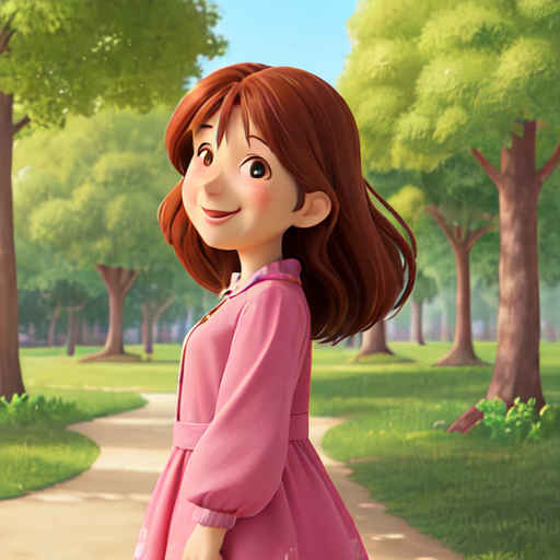 | P4 | profile picture, 1profile picture of a happy middle aged woman with long brown hair standing outside in a sunny park with trees in the background, digital art |