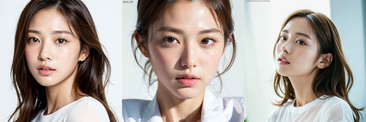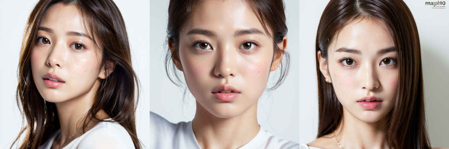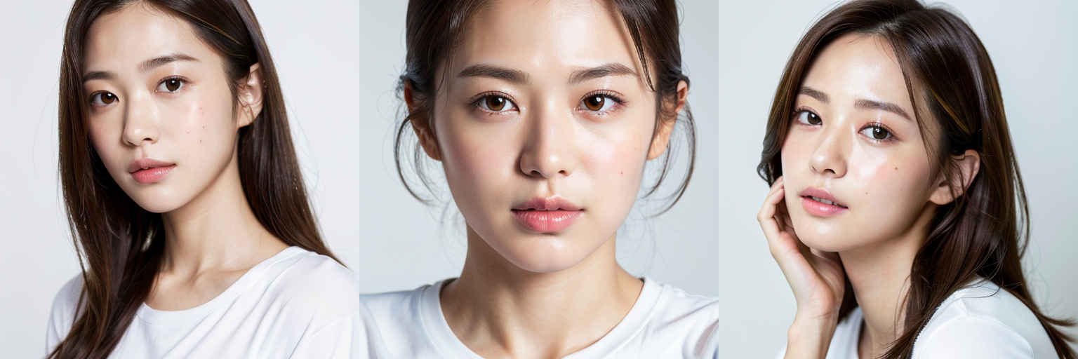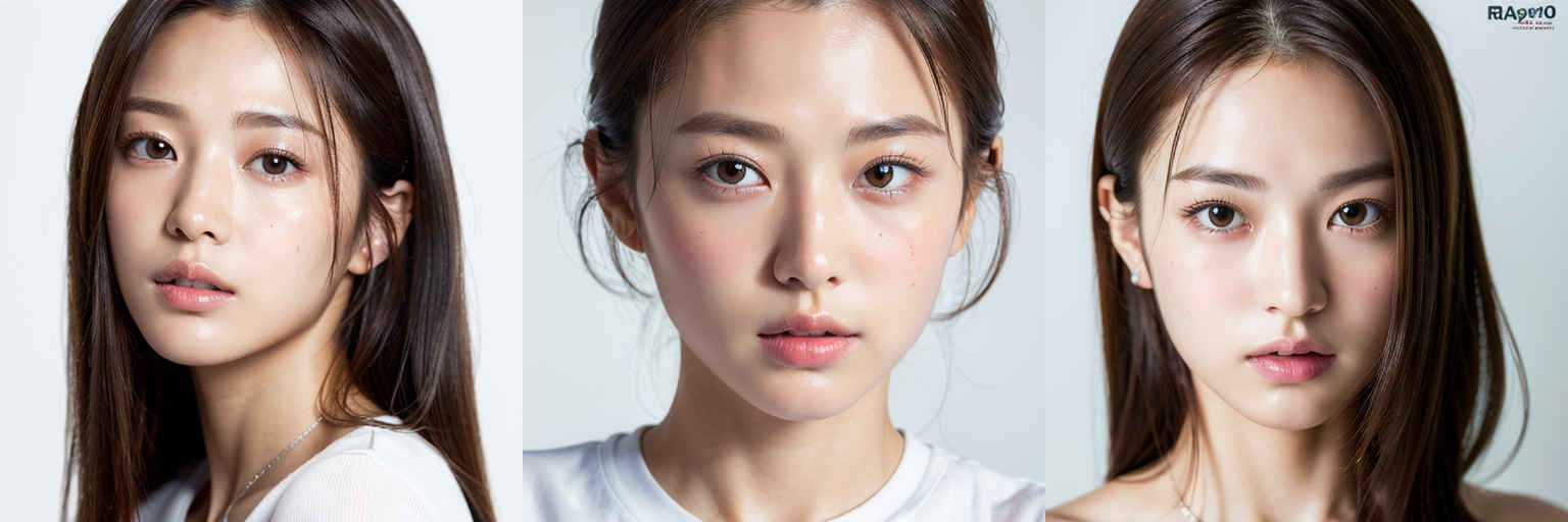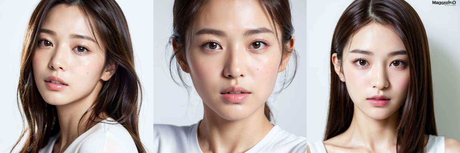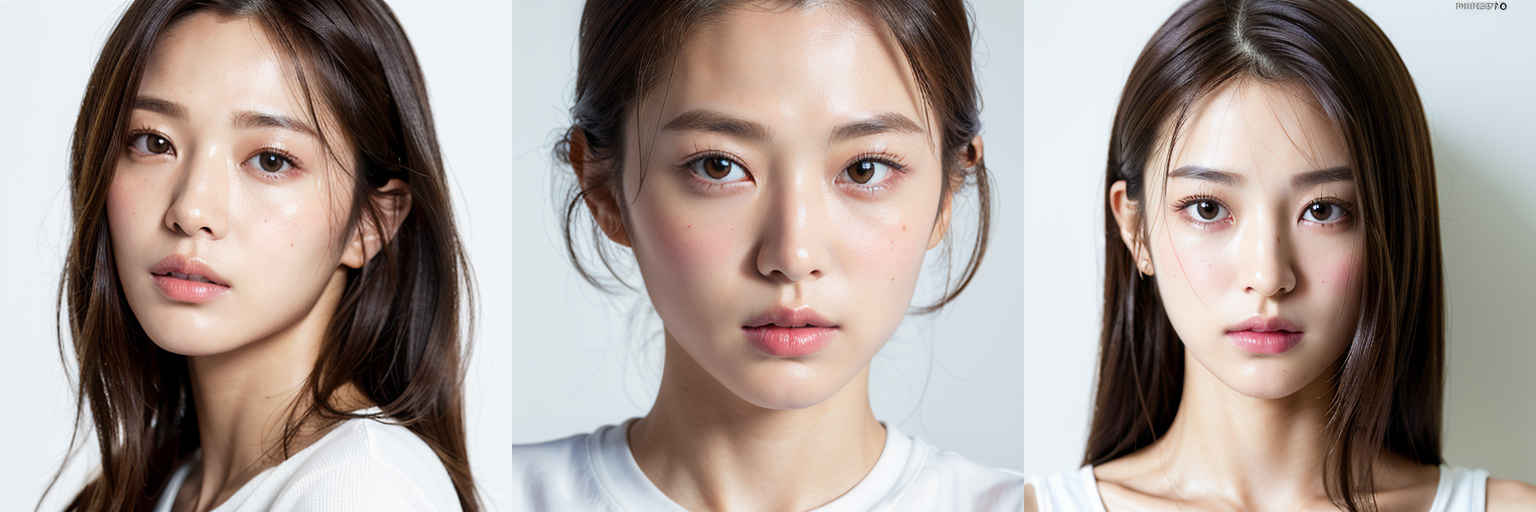 | (傑作、最高品質:1.4)、(8k、生写真、フォトリアル:1.2)、つやのある肌、詳細な肌、詳細な顔、詳細な目、1人の女の子、日本のアイドル、美しい顔、{個別プロンプト}、白背景、白い T シャツを着て | |