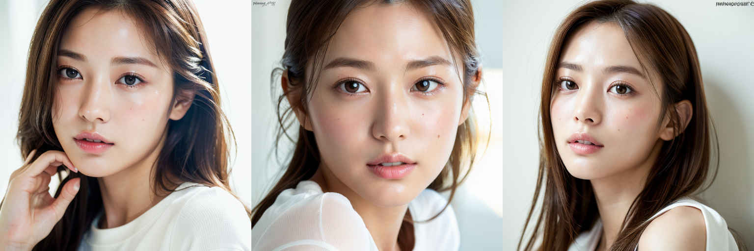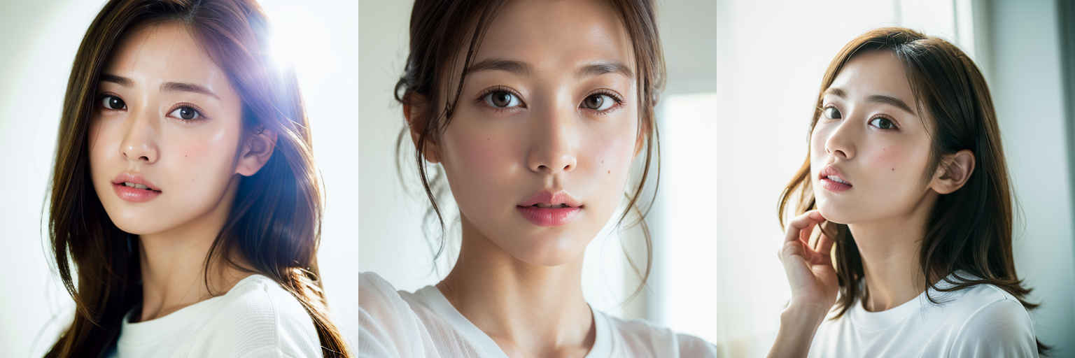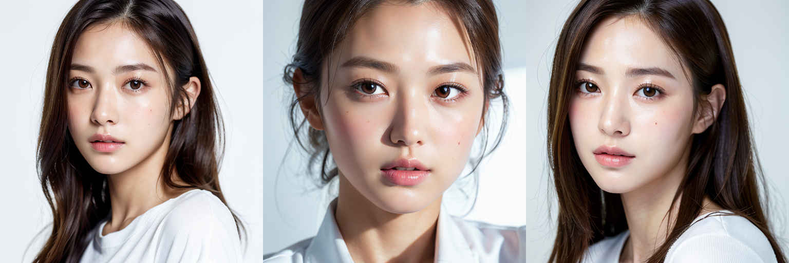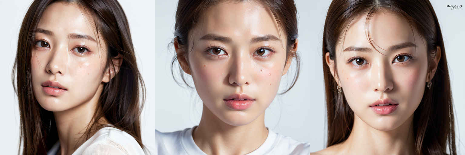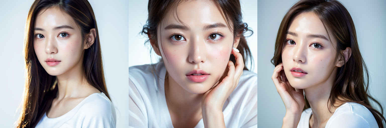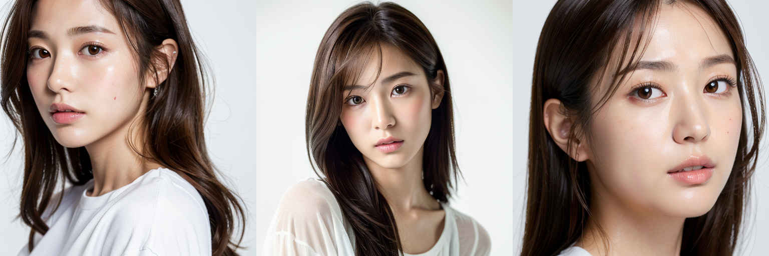 | (傑作、最高品質:1.4)、(8k、生写真、フォトリアル:1.2)、つやのある肌、詳細な肌、詳細な顔、詳細な目、1人の女の子、日本のアイドル、美しい顔、{個別プロンプト}、白背景、白い T シャツを着て | |