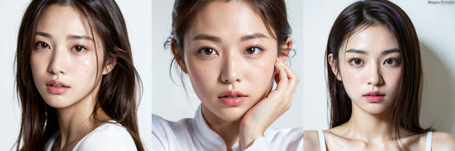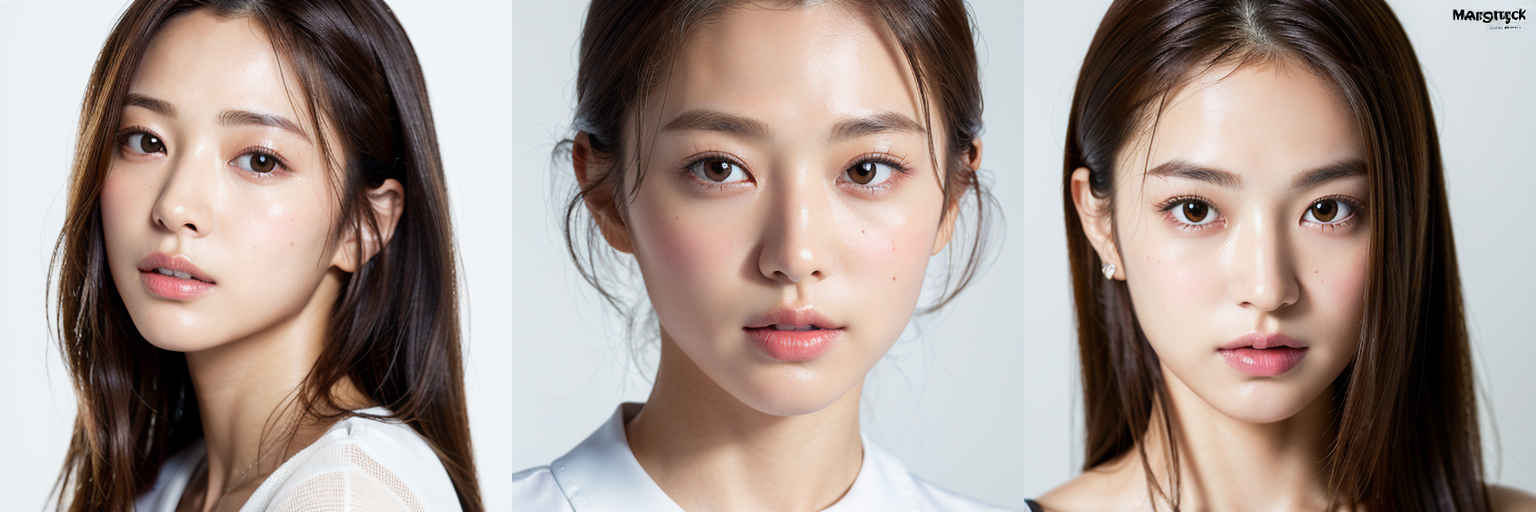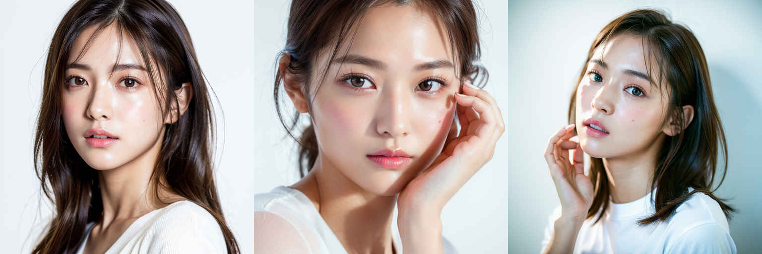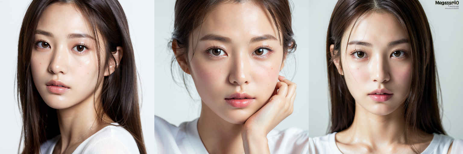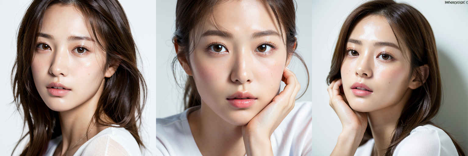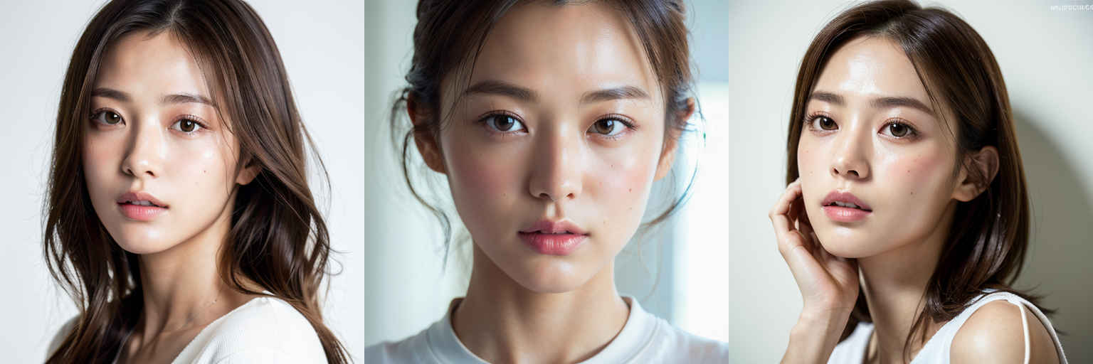 | (傑作、最高品質:1.4)、(8k、生写真、フォトリアル:1.2)、つやのある肌、詳細な肌、詳細な顔、詳細な目、1人の女の子、日本のアイドル、美しい顔、{個別プロンプト}、白背景、白い T シャツを着て | |