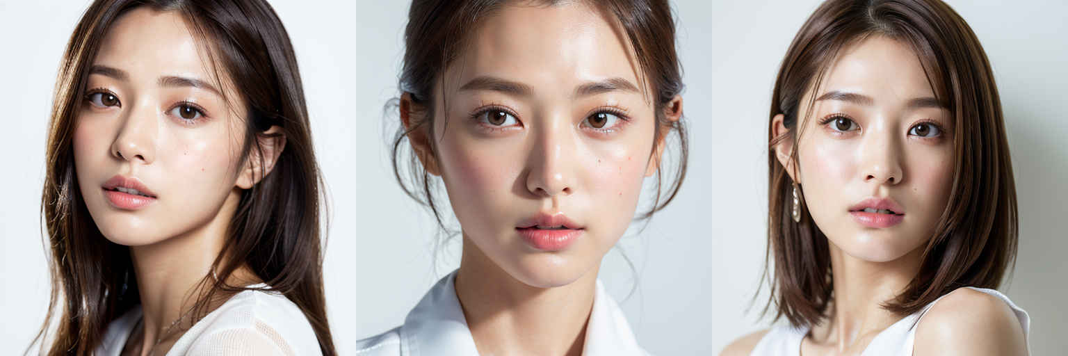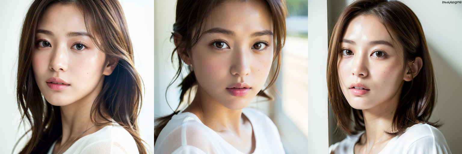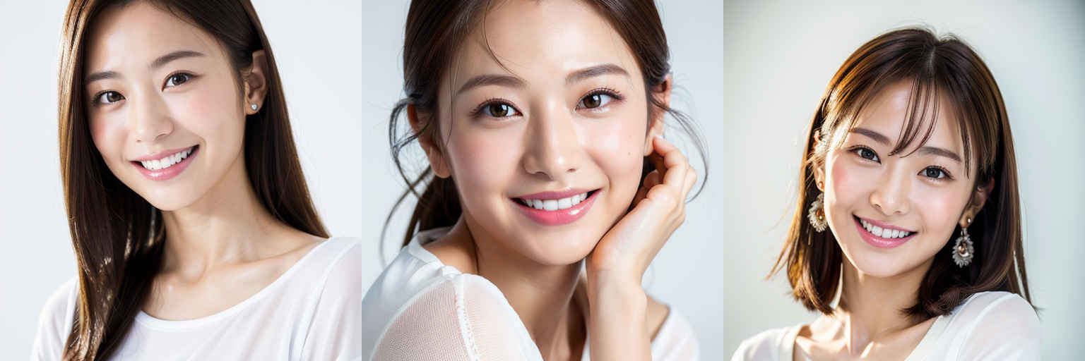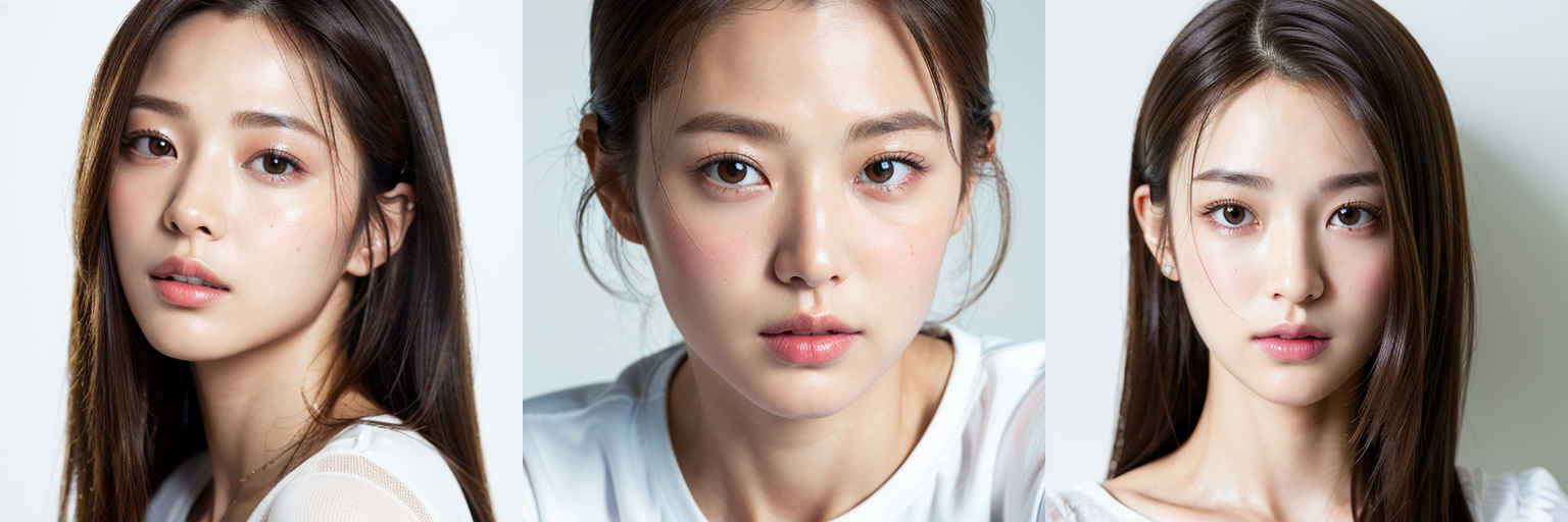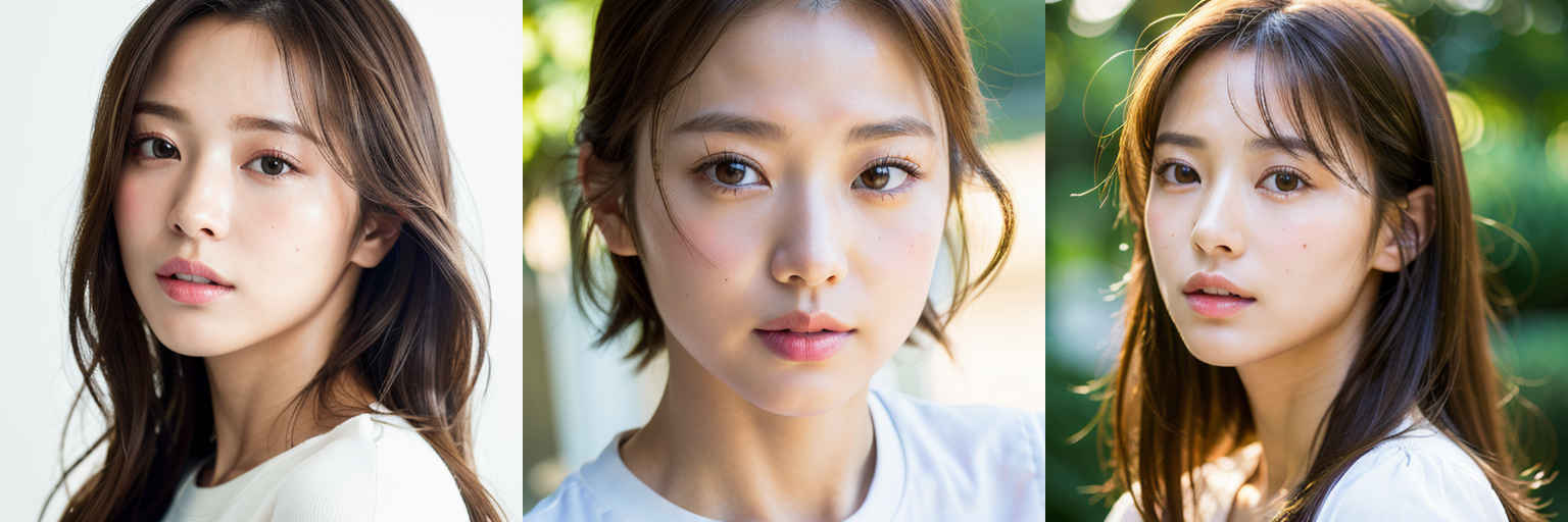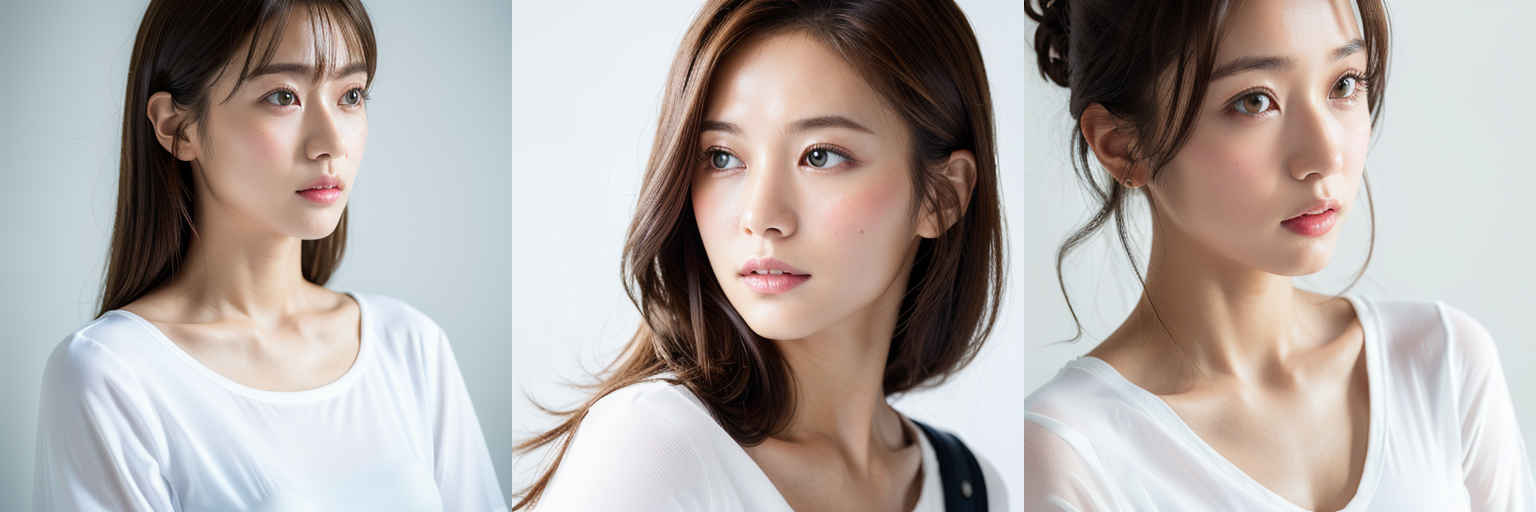 | P1 | (masterpiece,best quality:1.4),(8k,raw photo,photo realistic:1.2),shiny skin,detailed skin,detailed face,detailed eyes,1girl,Japanese idol,beautiful face,{個別プロンプト},white background,wearing a white t-shirts |