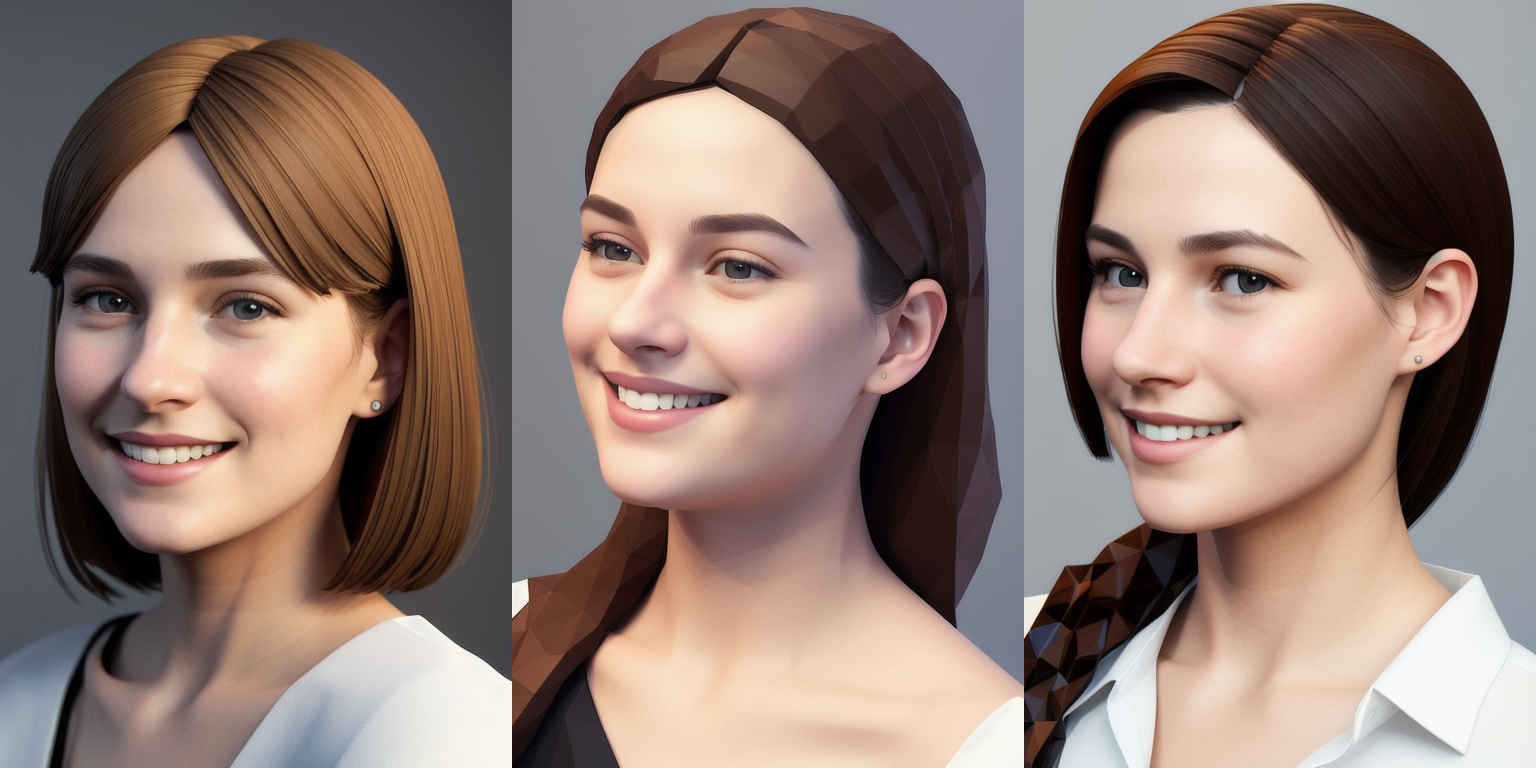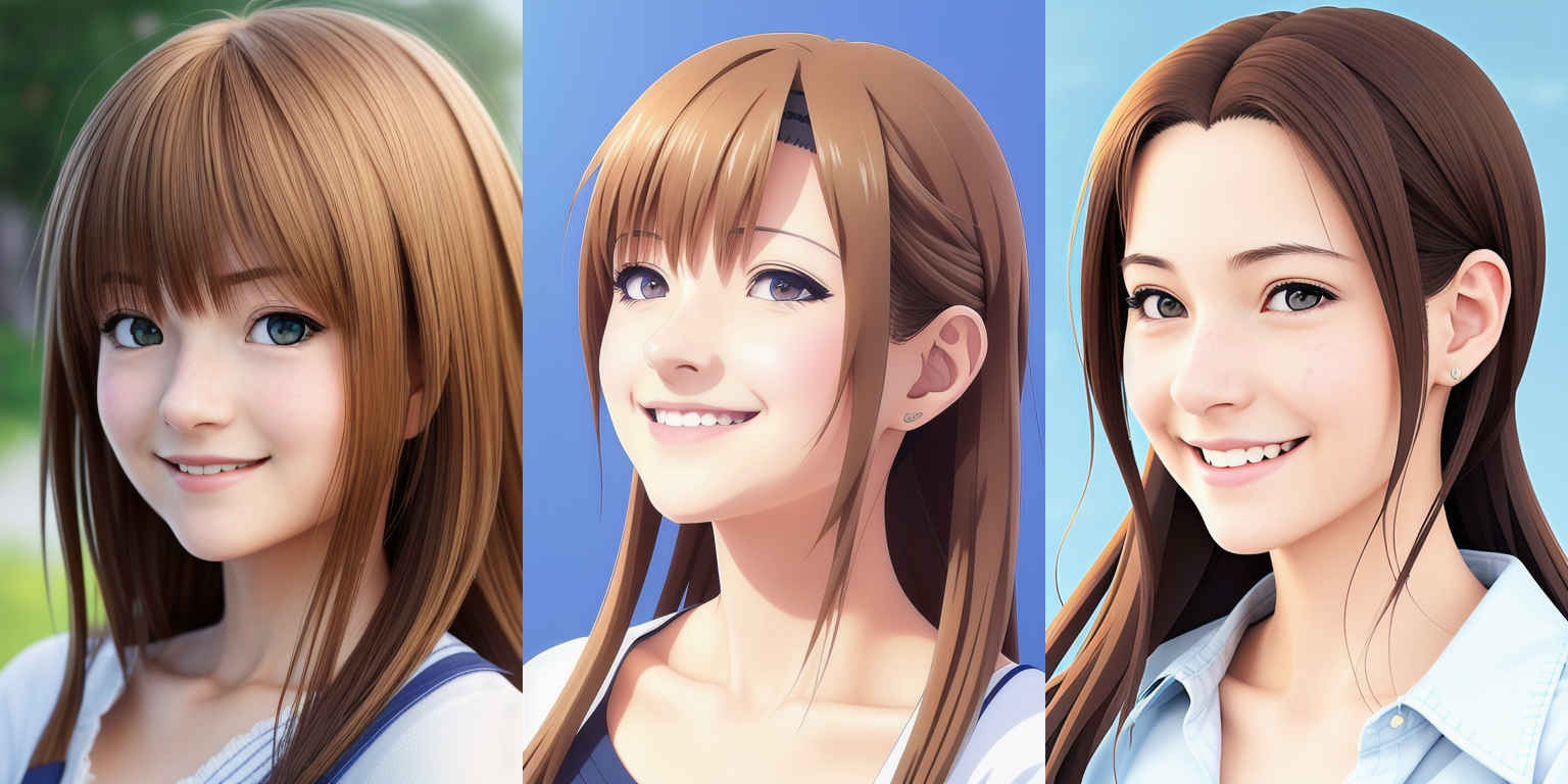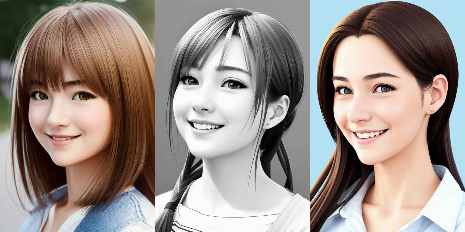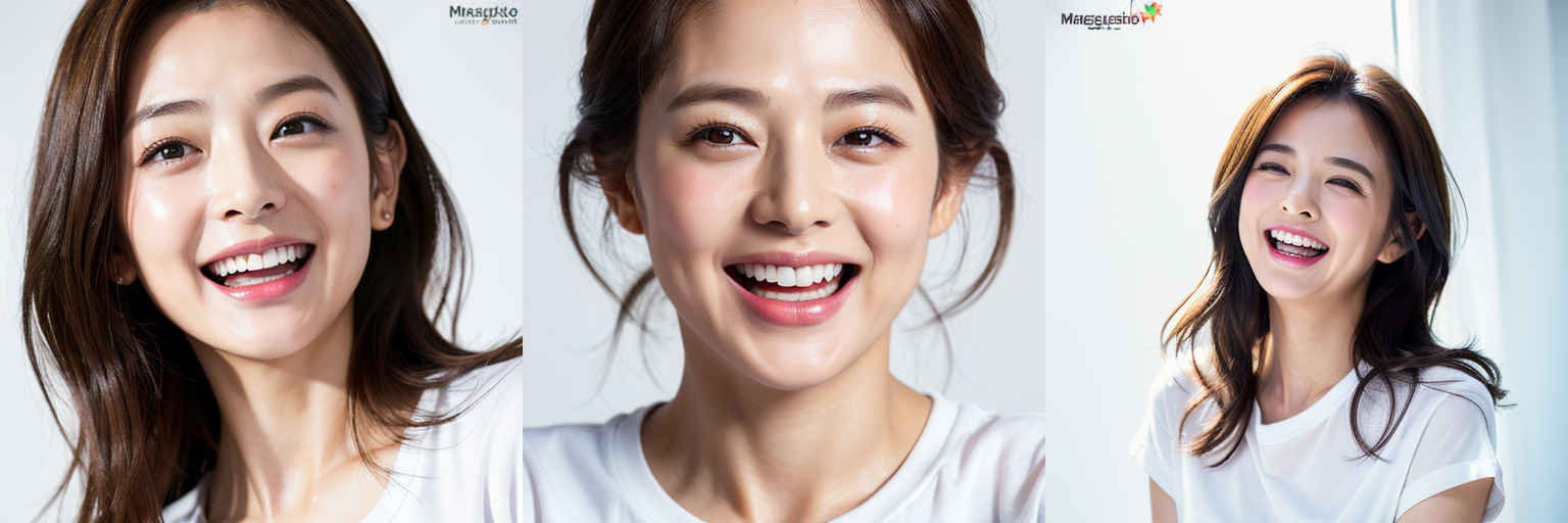| P3 | A realistic portrait of a young woman, with a gentle smile, in the style of a {個別プロンプト} |