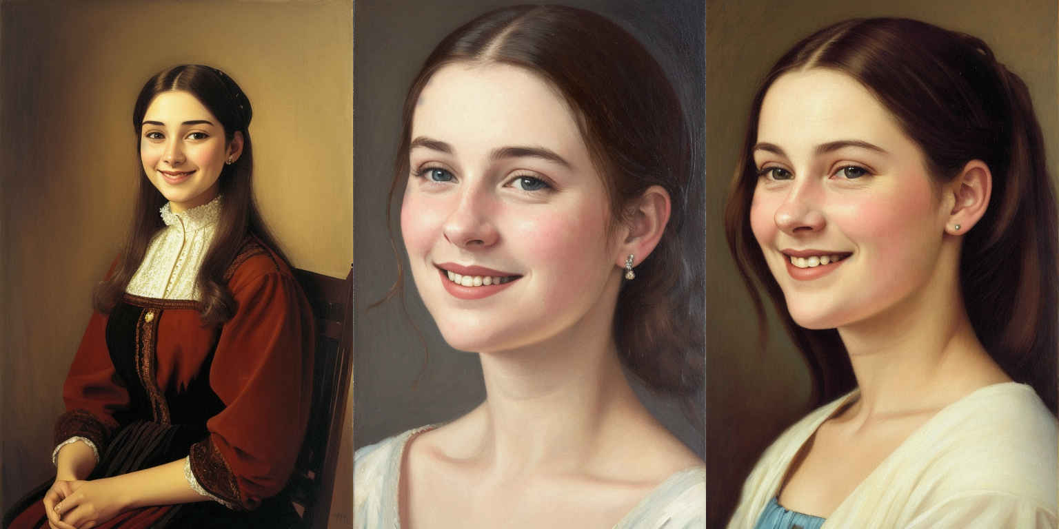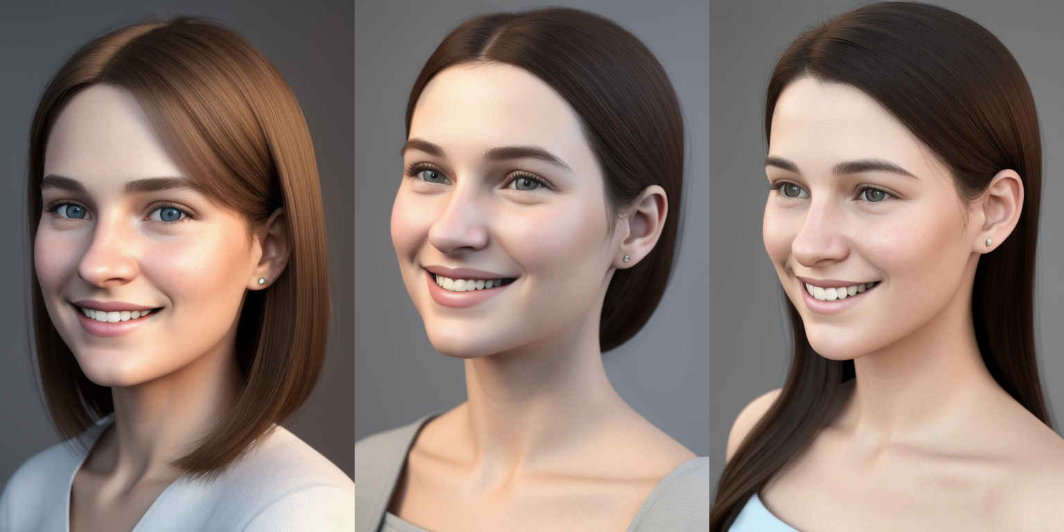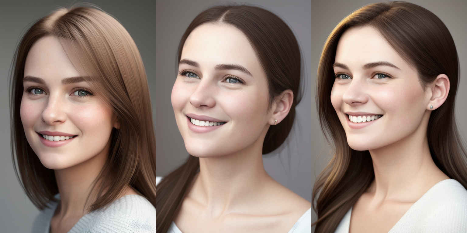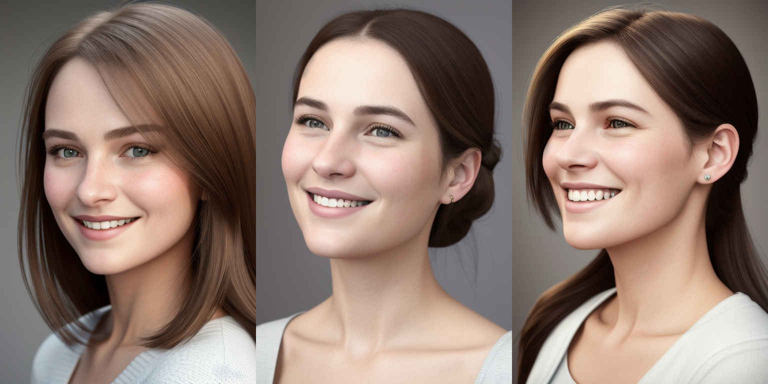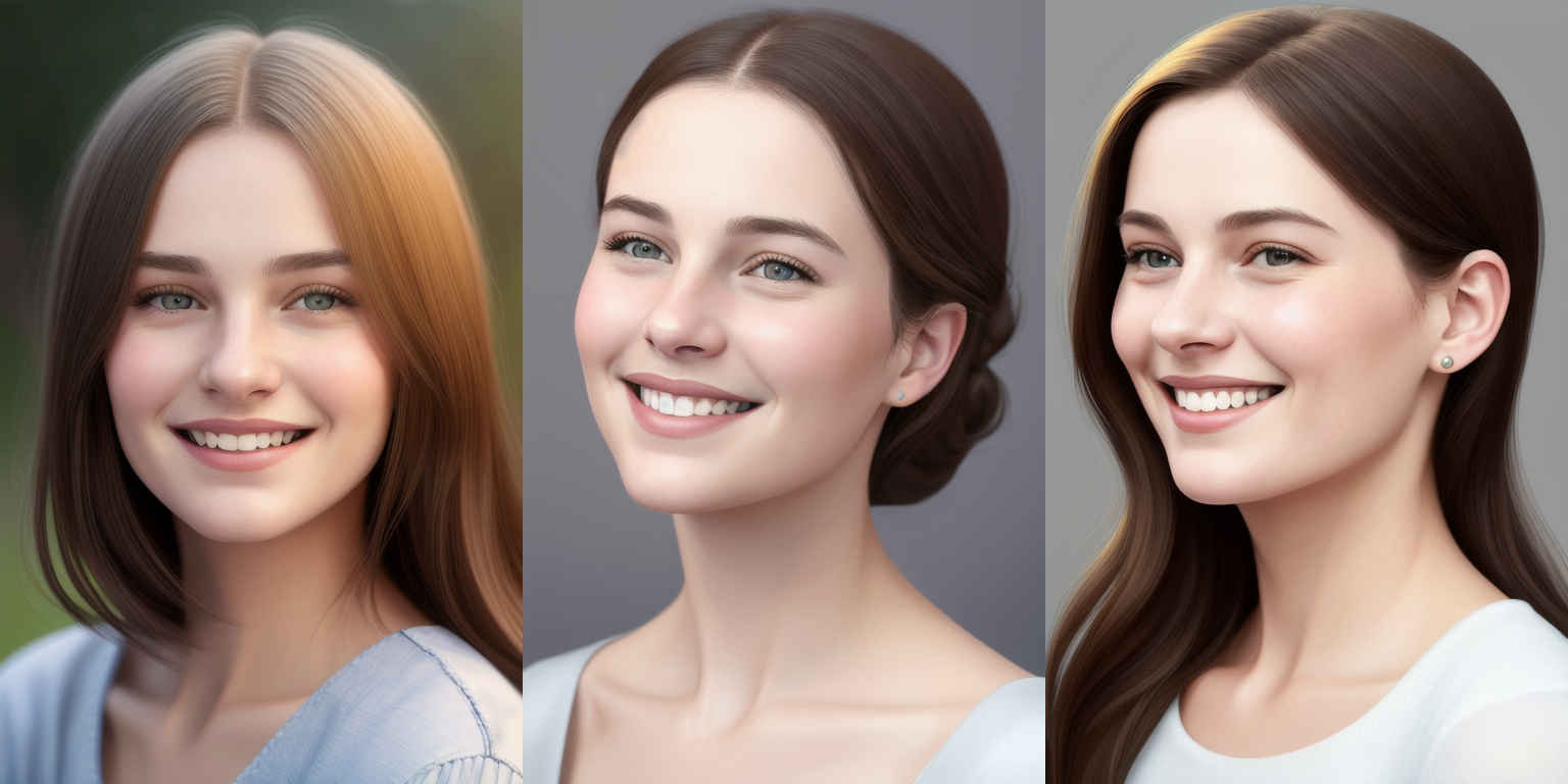 | {個別プロンプト} スタイルの、穏やかな笑みを浮かべた若い女性のリアルなポートレート | |