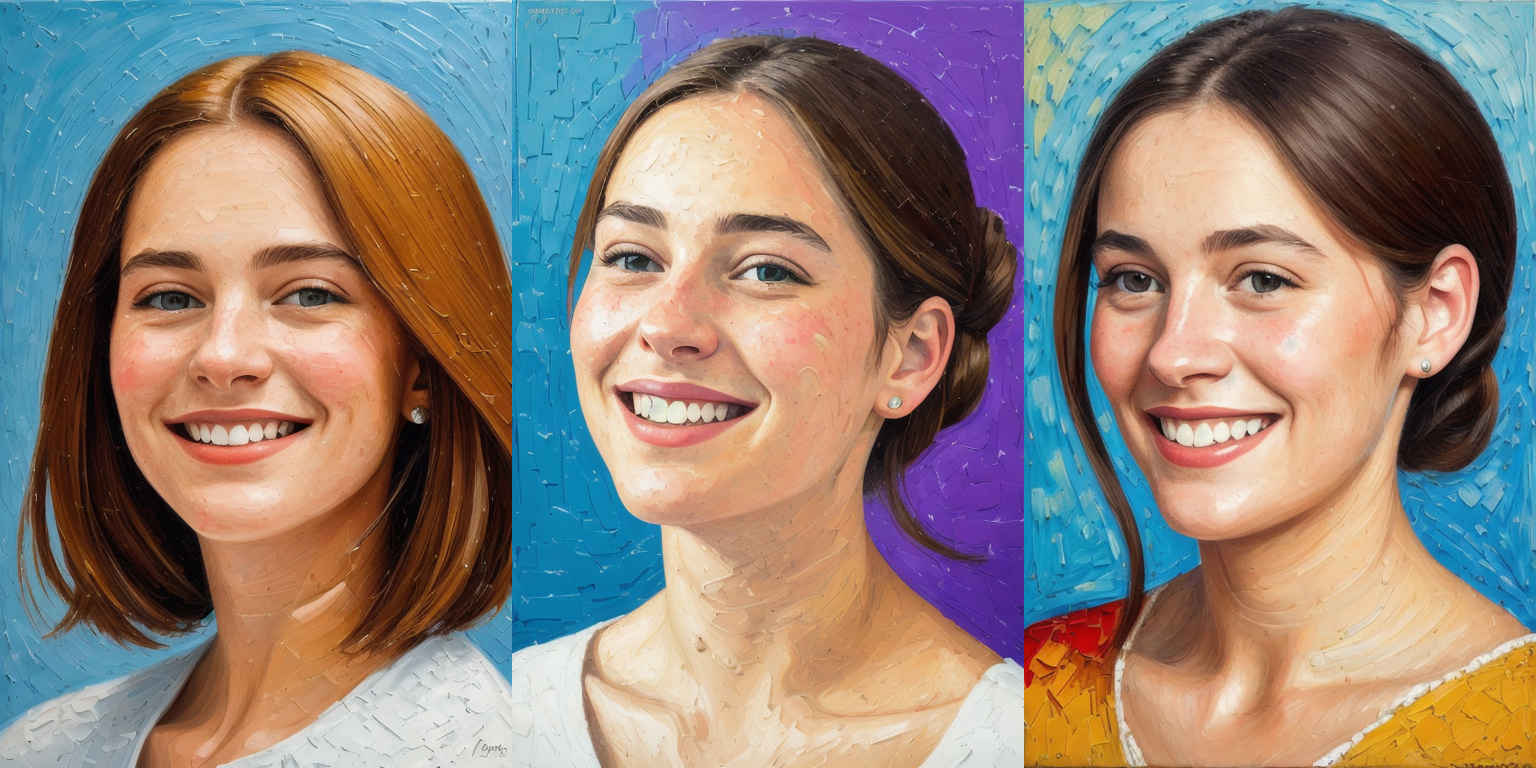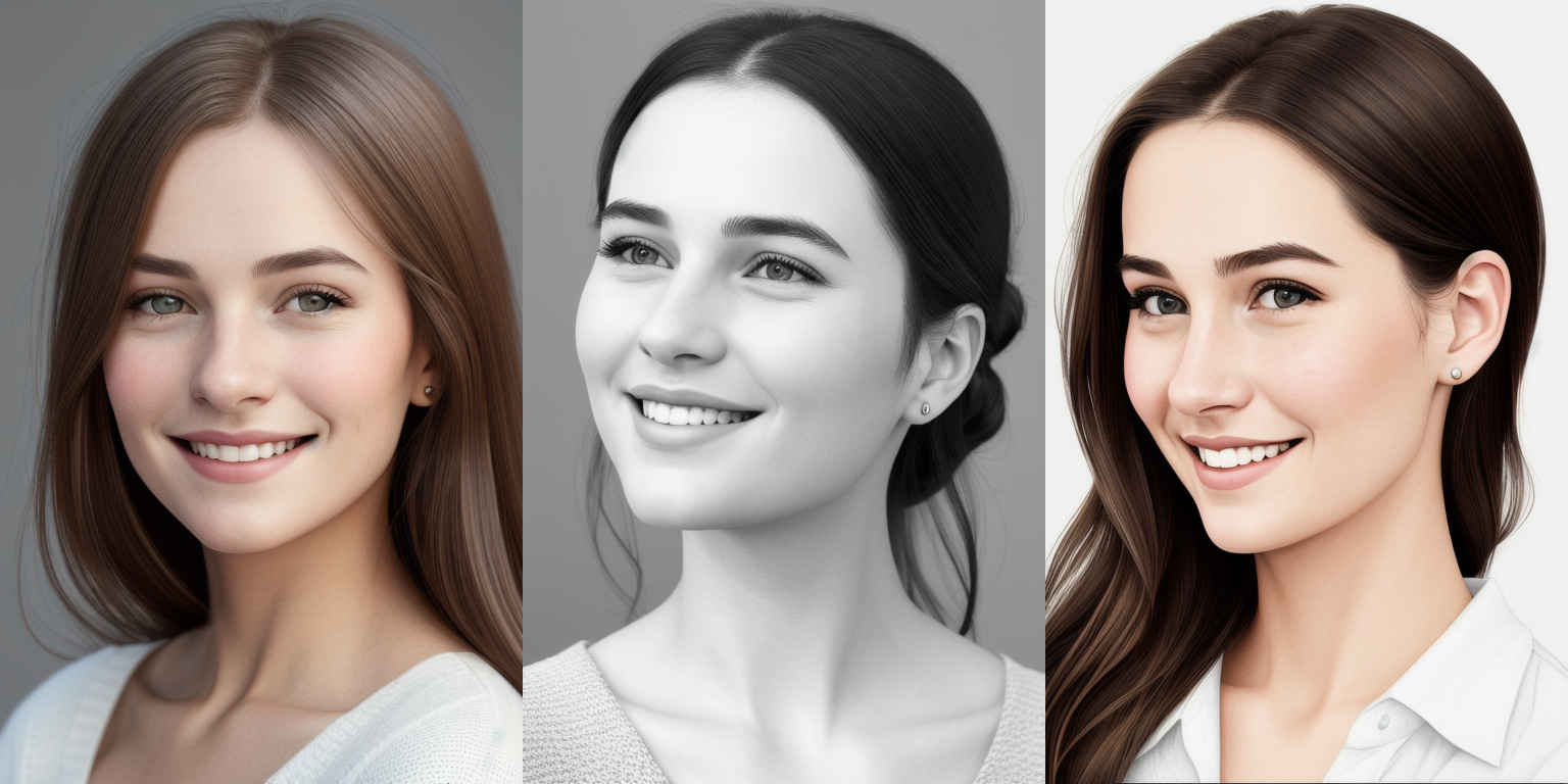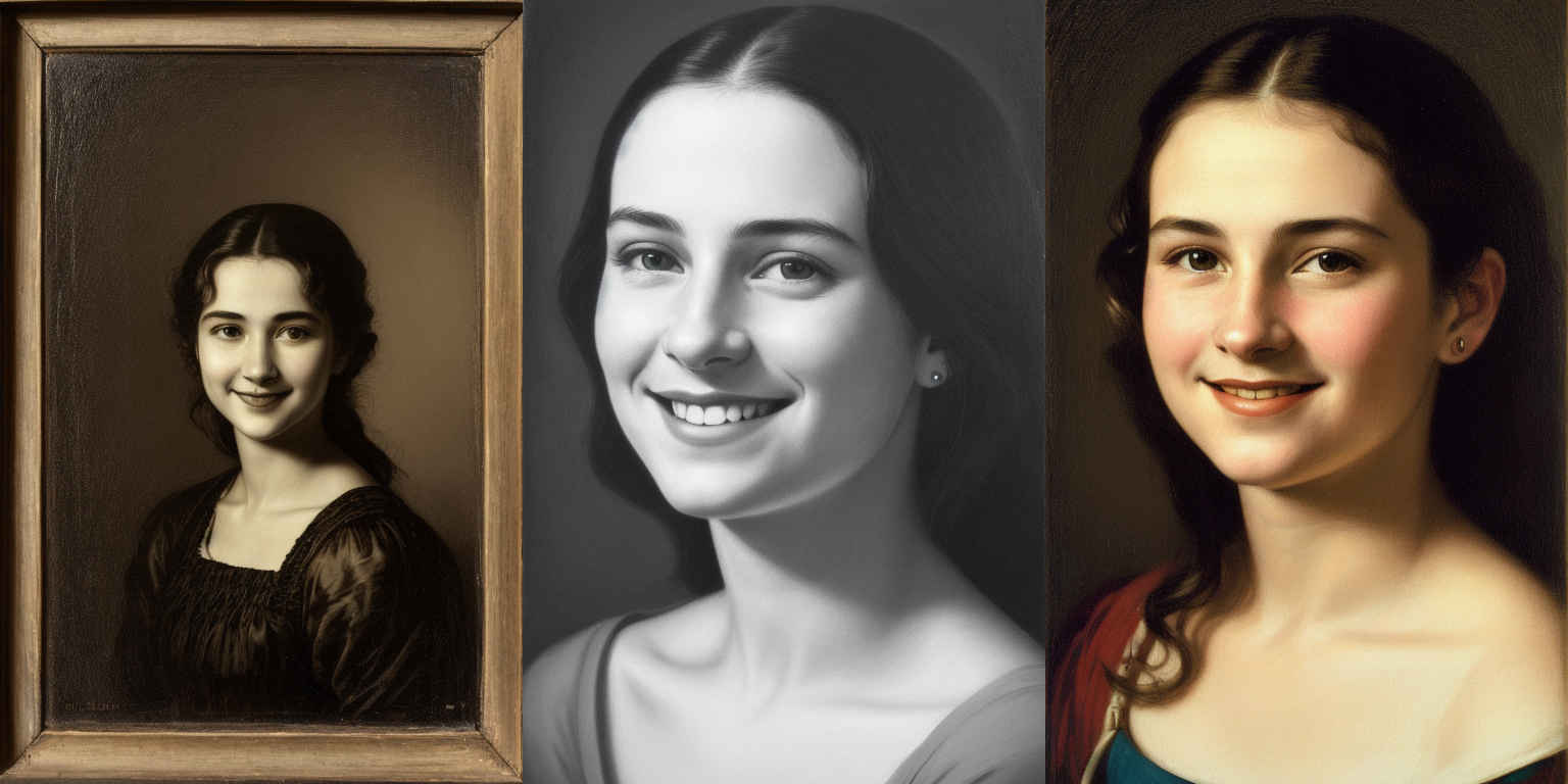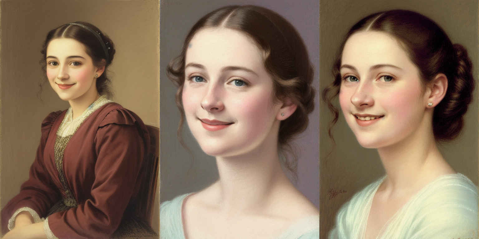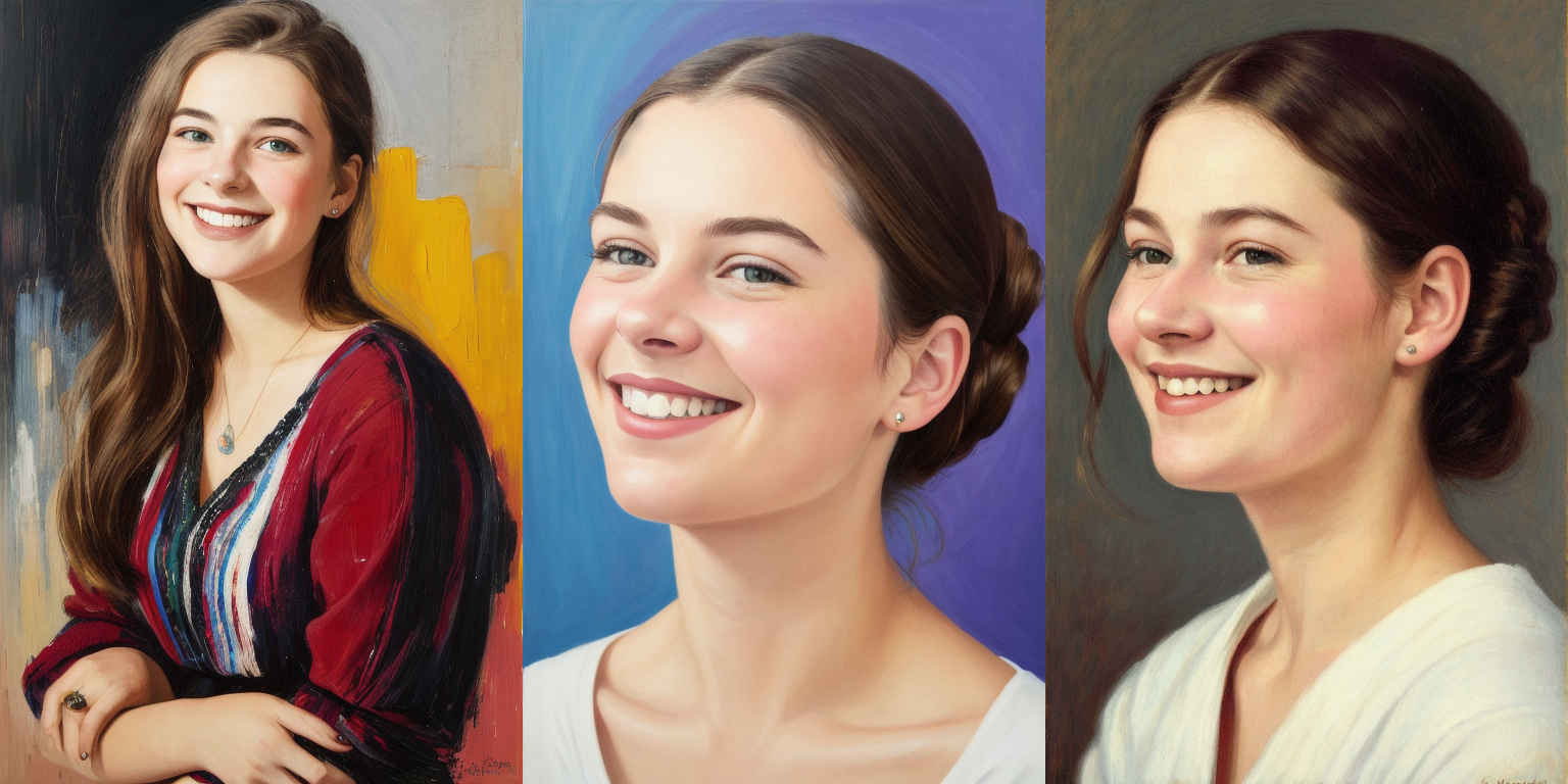 | {個別プロンプト} スタイルの、穏やかな笑みを浮かべた若い女性のリアルなポートレート | |