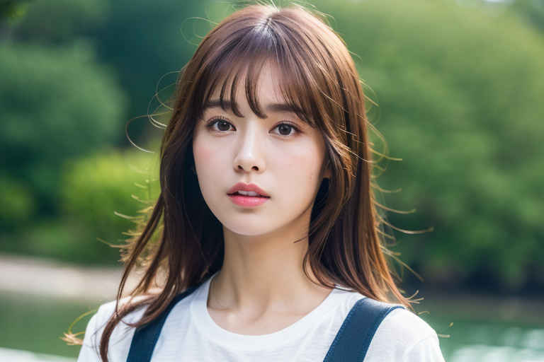 | P1 | (masterpiece,best quality:1.4),(8k,raw photo,photo realistic:1.2),1girl,t-shirt, bangs, blurry, blurry background, brown eyes, brown hair, depth of field, lips, looking at viewer, nose,<lora:flat2:0.4>, outdoors, realistic, solo, upper body, water |