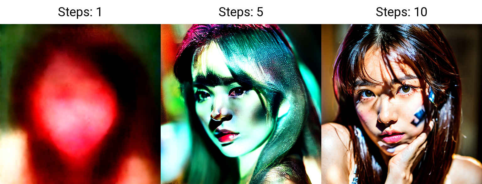 ■ プロンプトをどれだけ正確に反映してほしいかを設定する指標 ■ プロンプト解釈の途中で生成を止め、ある程度プロンプトを無視した抽象的な画像を出力するもの 1〜12 の範囲で数値を指定 |