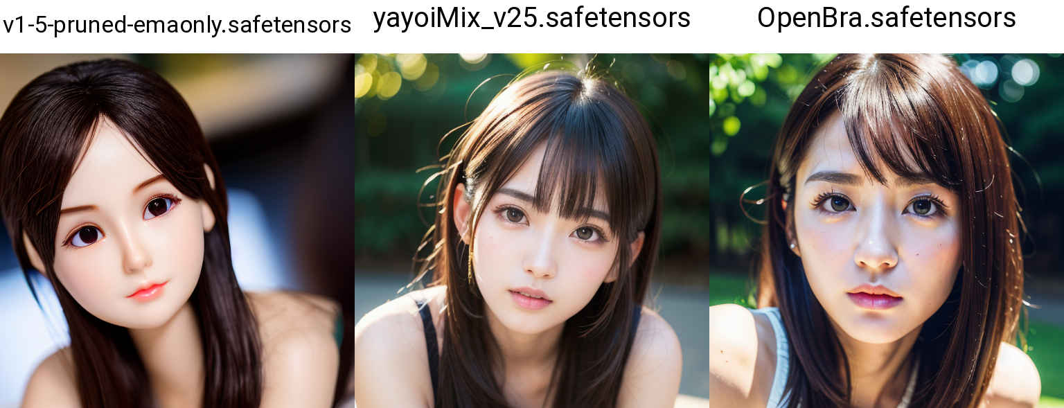 標準モデル(v1-5-pruned-emaonly.safetensors)は人物の生成には向いていないので、別のモデルを用意します