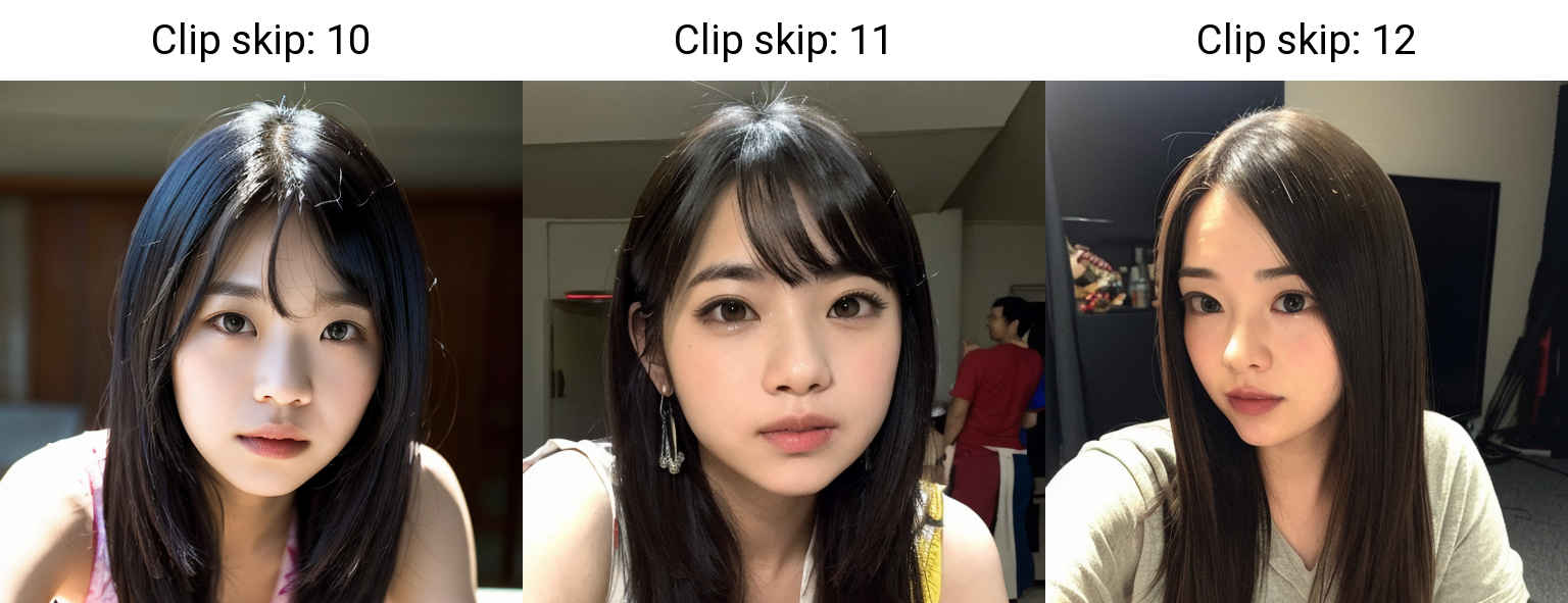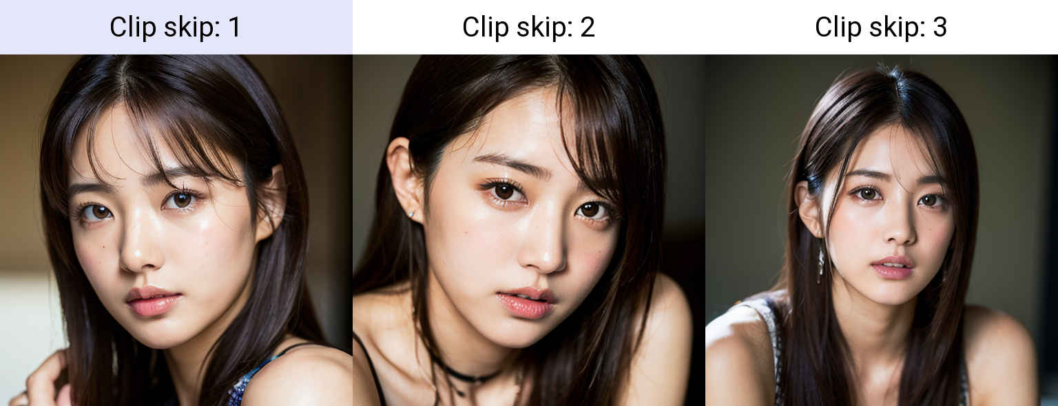 - Clip skip ※ 設定変更には オプション・パラメータの設定 が必要です
