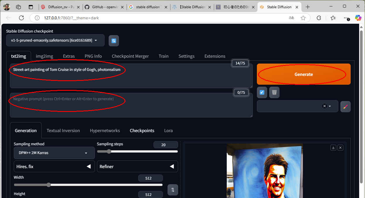⑥「Generate」ボタンを押す | web UI v1.10 | web UI v1.6 | web UI v1.6(OV) |