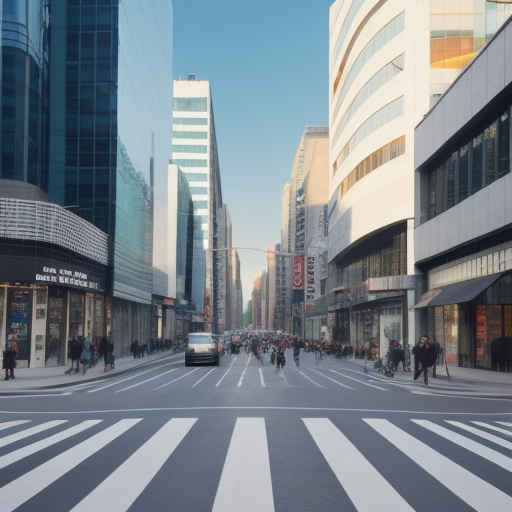 " a busy city street in a modern city"(近代的な都市のにぎやかな街路)