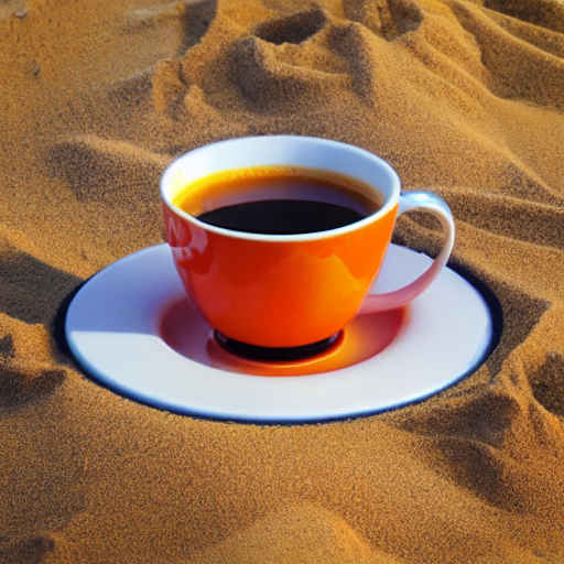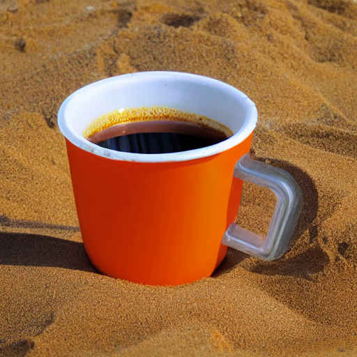 python sd_047.py --prompt 'ビーチに置かれたオレンジ色のコーヒーカップ' --ip_image_path 'images/beach.jpg'