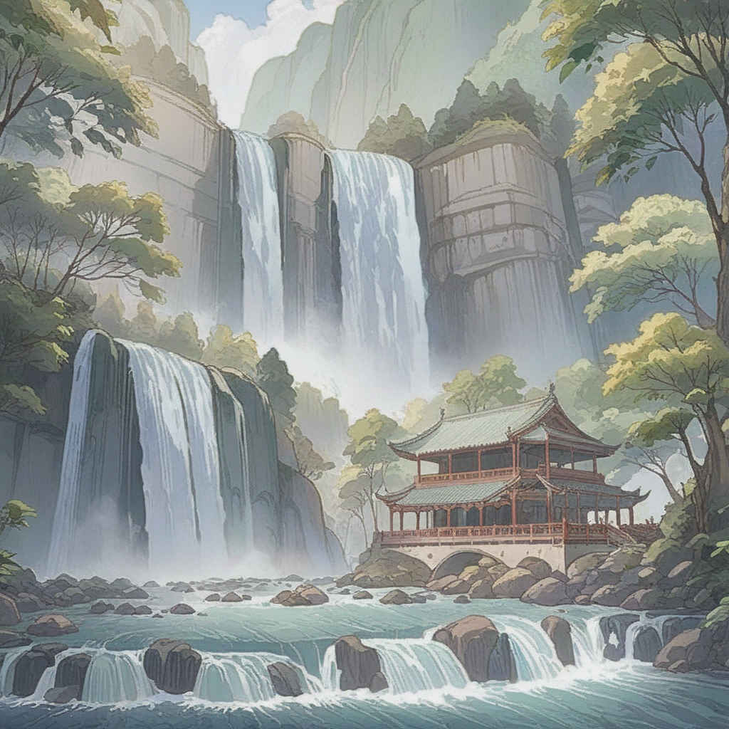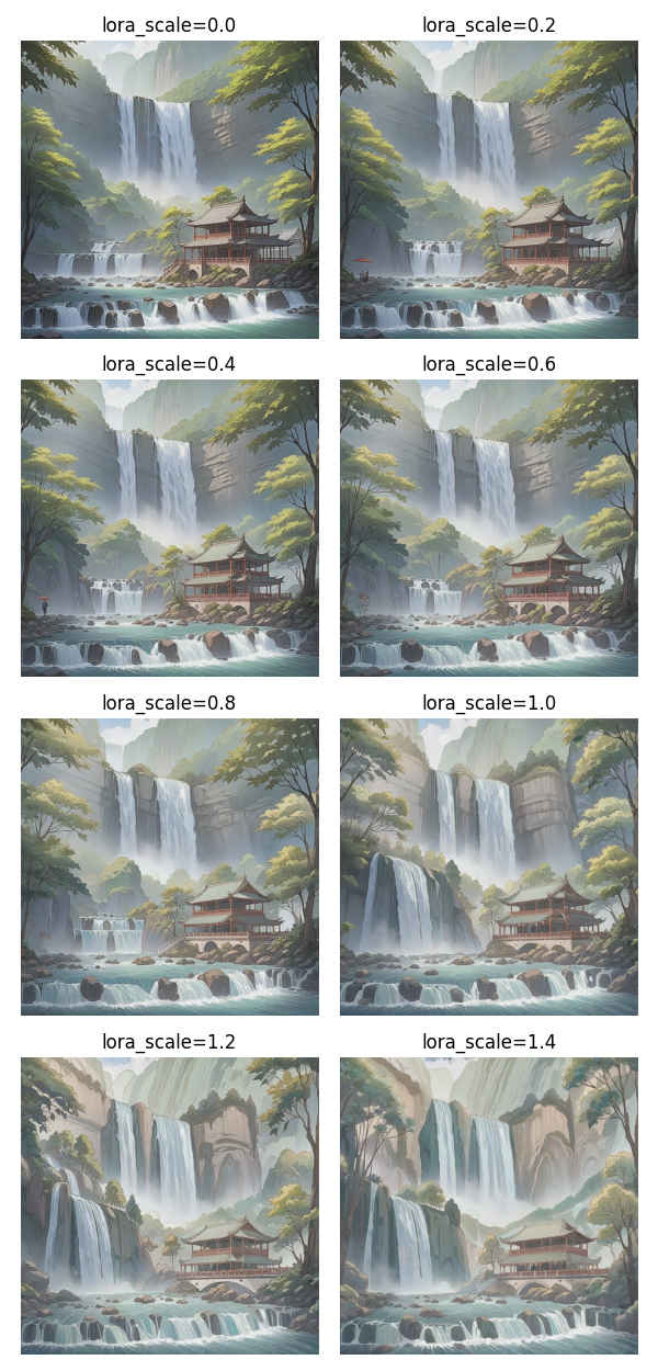 prompt = "guofeng, nature and waterfall photography" # トリガーワードが含まれる