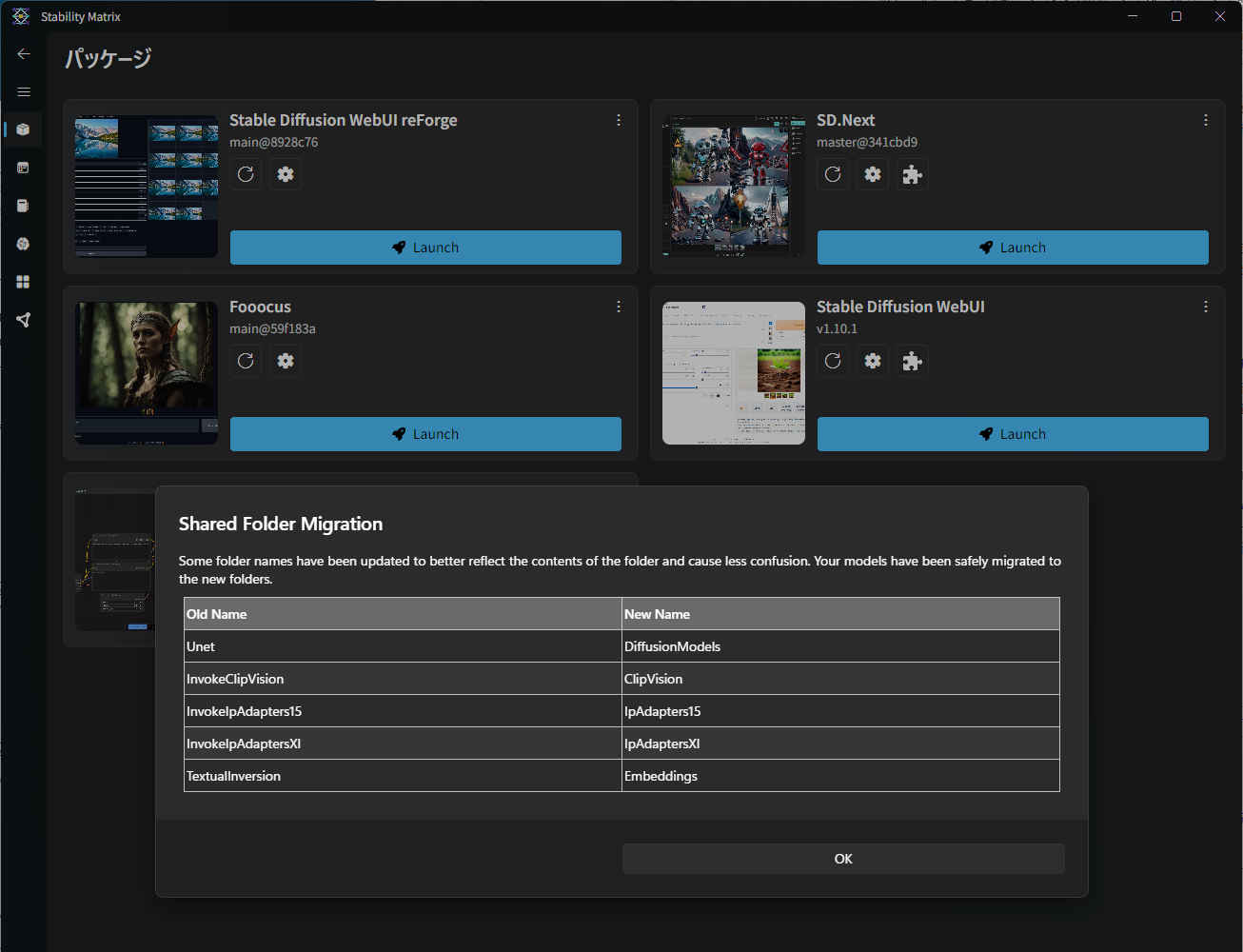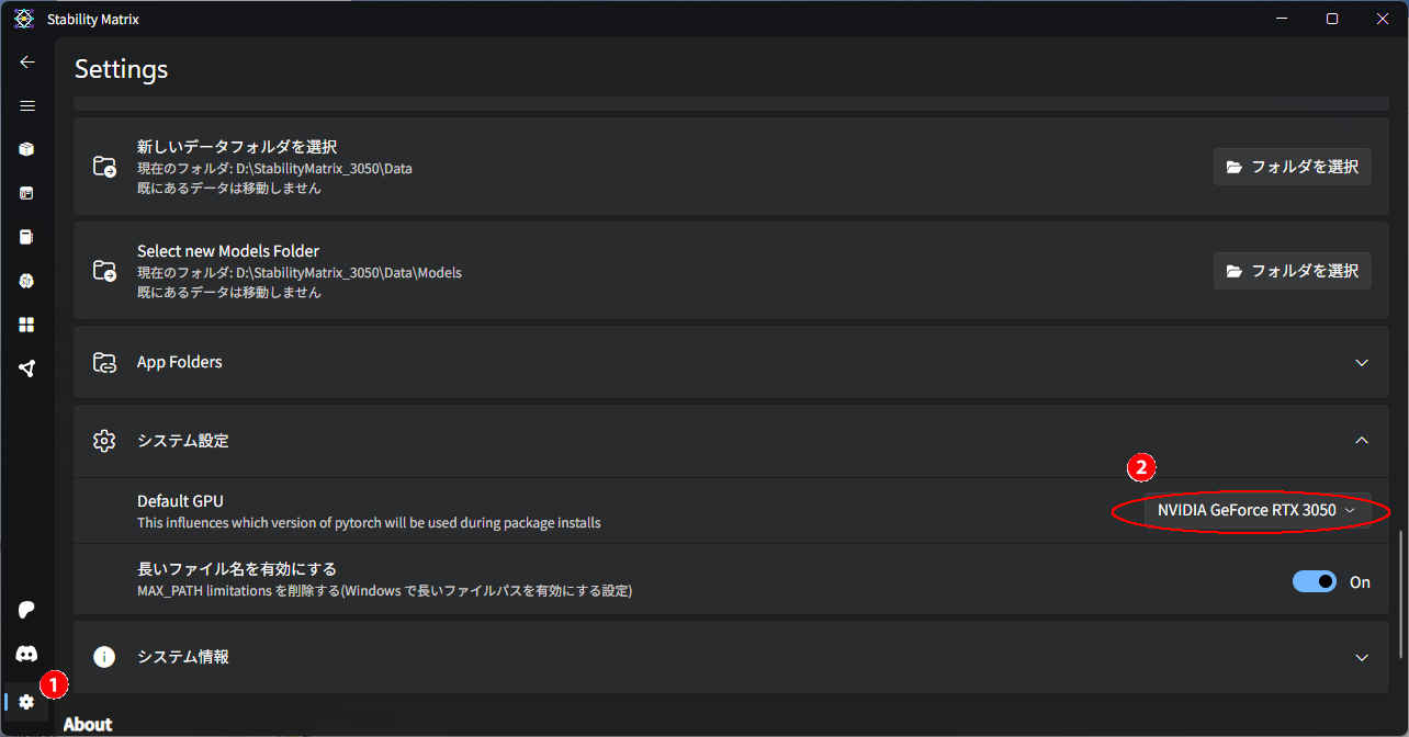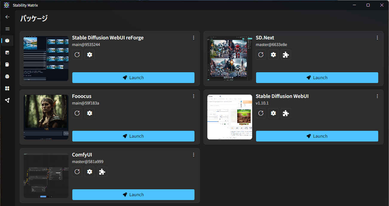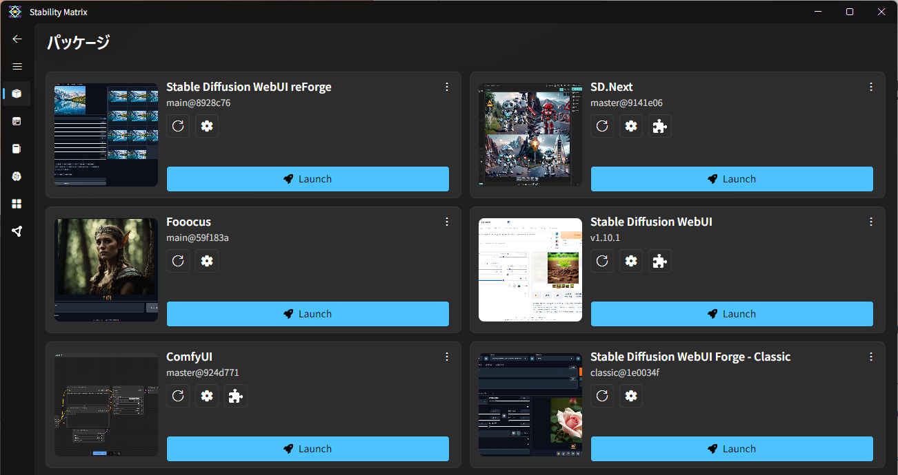 $ cd StabilityMatrix/ $ ./StabilityMatrix.AppImage※ エラーとなる場合 → dlopen(): error loading libfuse.so.2