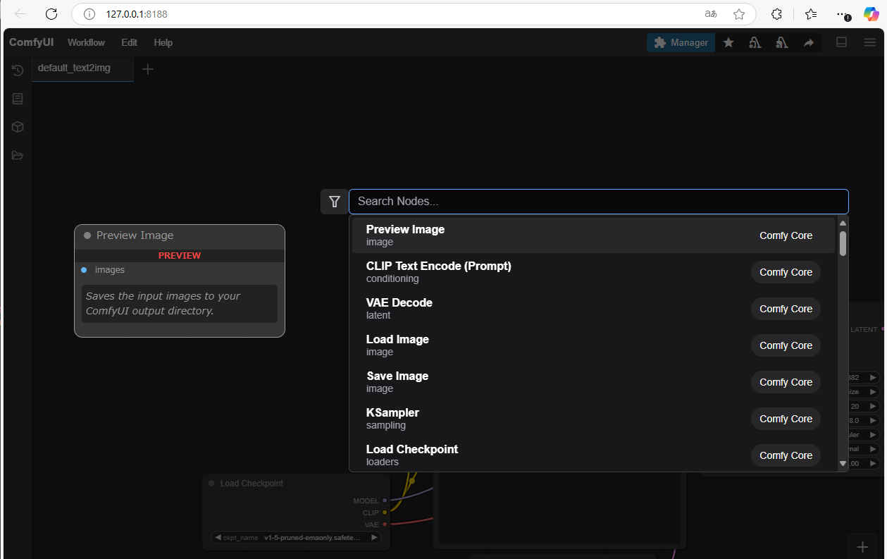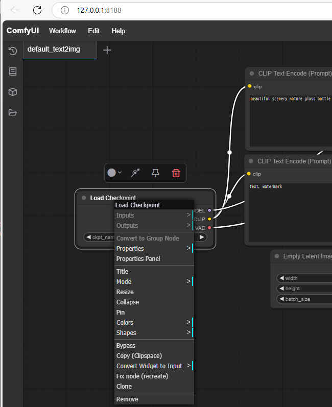 - ノードメニュー(例:Load Checkpoint)