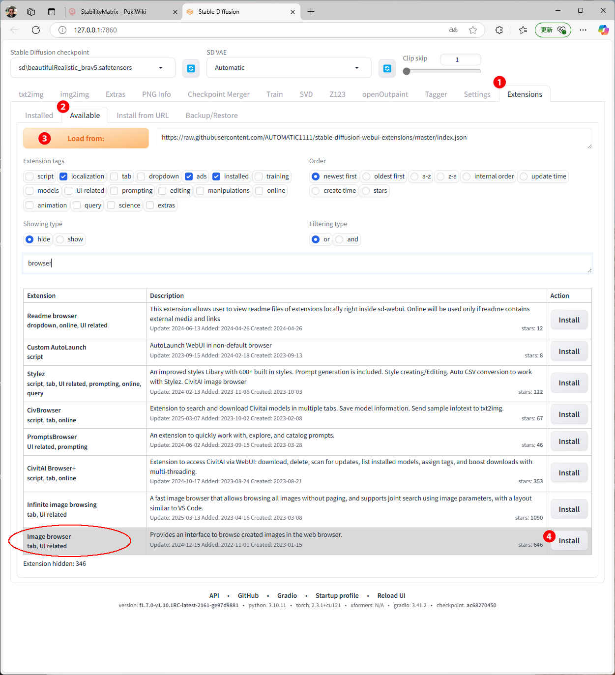 「Stable Diffusion」拡張機能 Image Browser