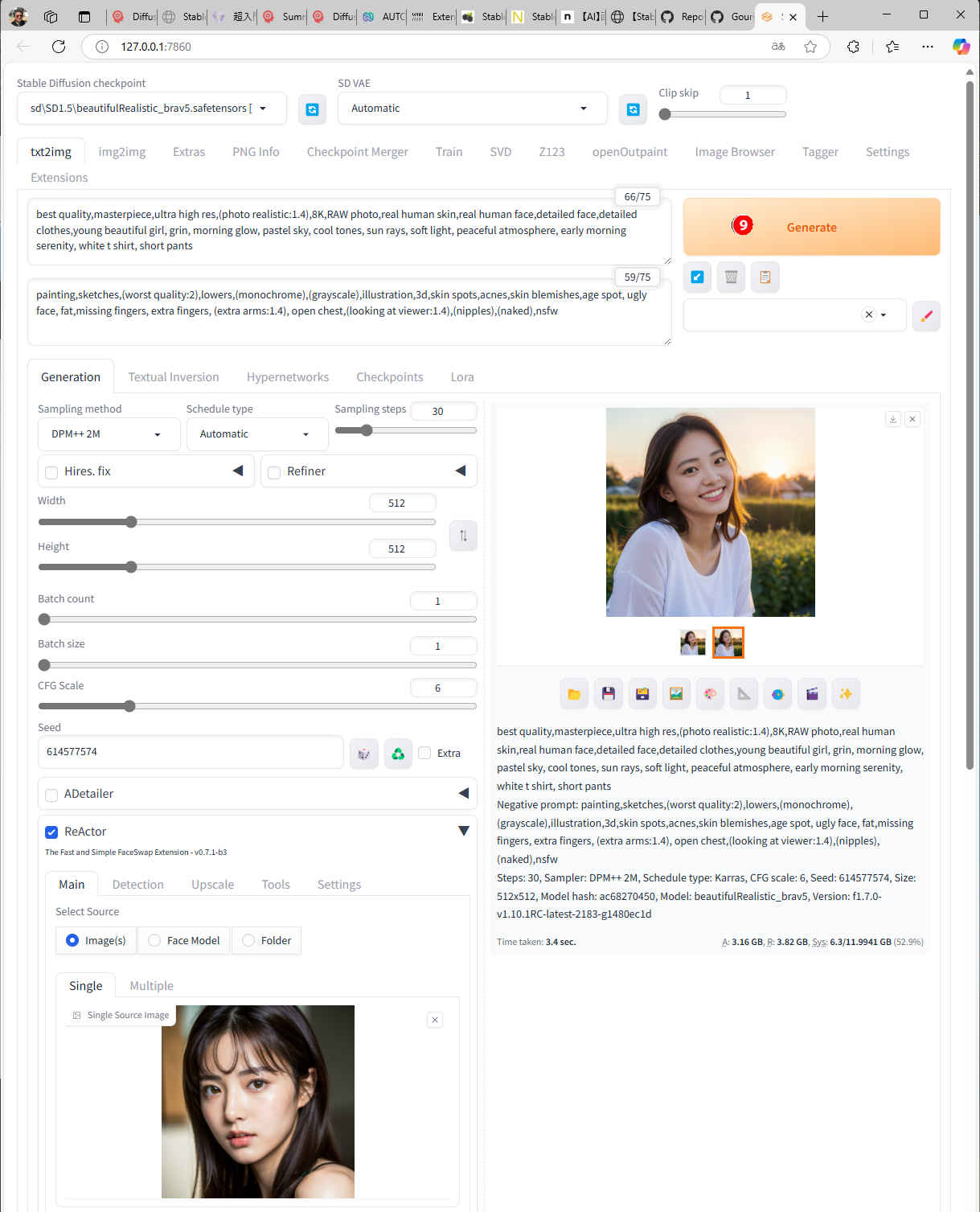 「Stable Diffusion」拡張機能 Reactor