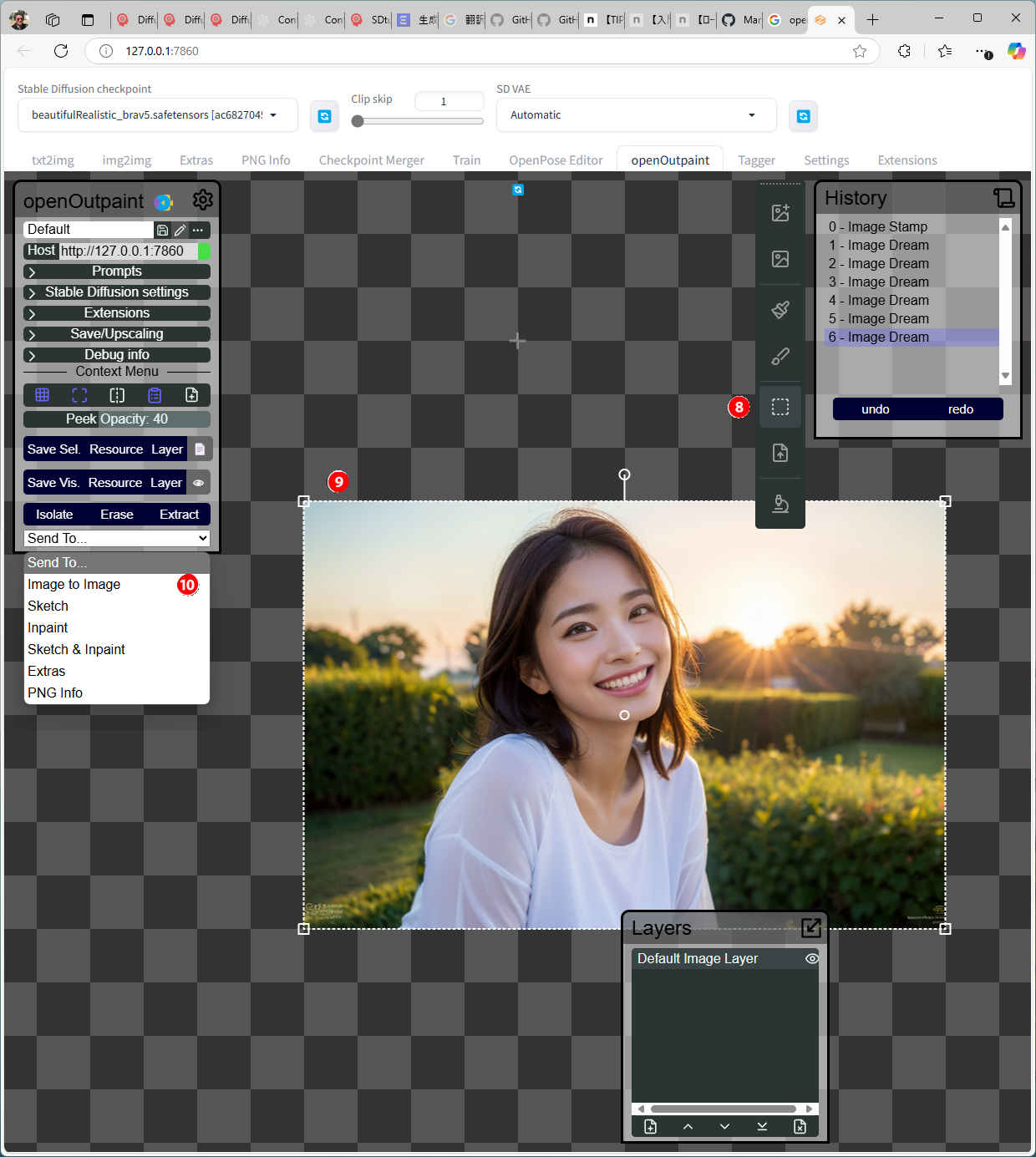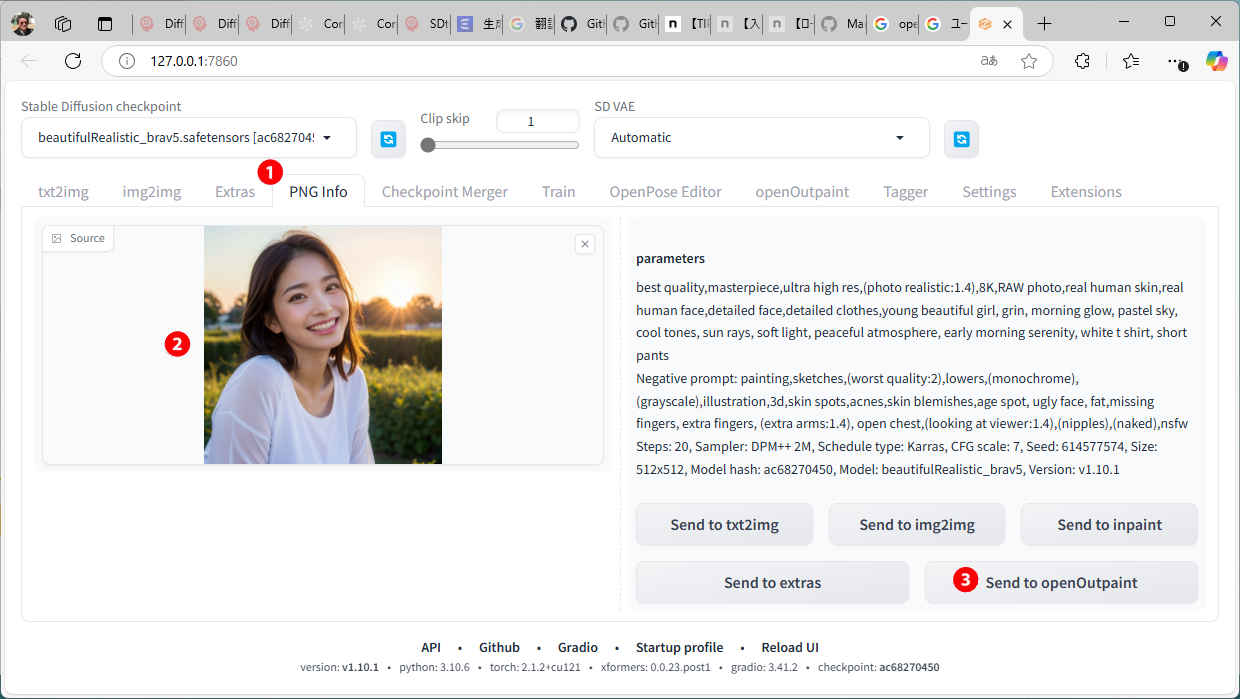 ③「Send to openOutpaint」を押す