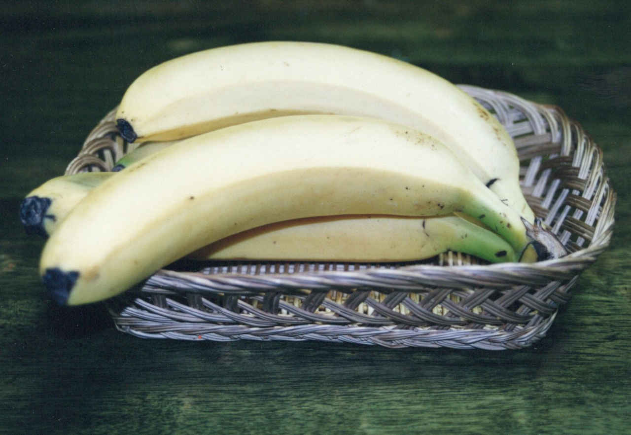 かごの中のバナナ、水彩画、白背景
