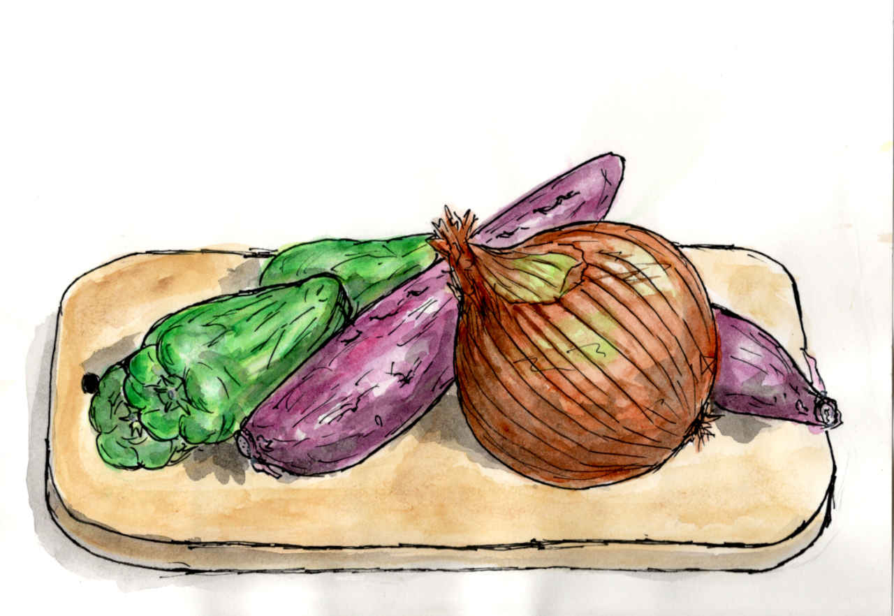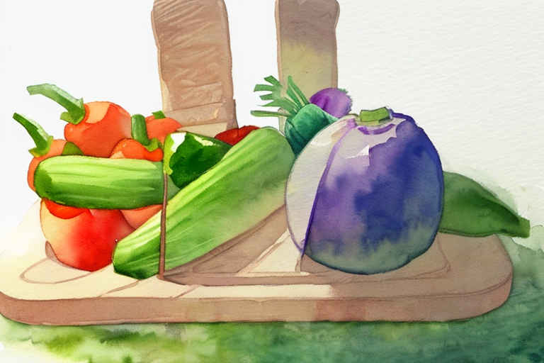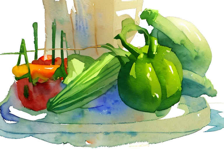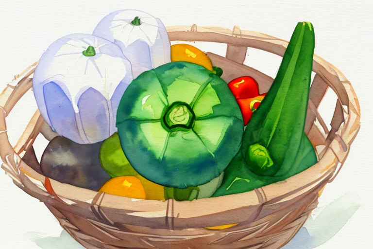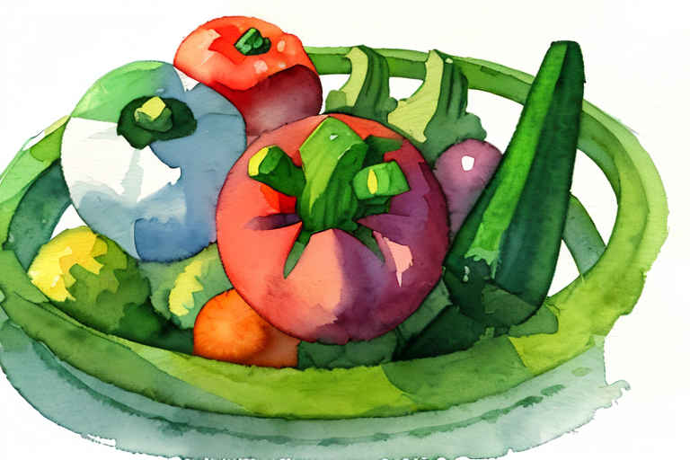 Vegetables in a basket, watercolor painting, on a white background