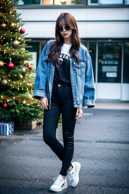 | 女の子 1 人、バッグ、黒のパンツ、ぼやけている、ぼやけた背景、ぼやけた前景、ボケ、茶色の髪、クリスマス ツリー、目を閉じている、デニム、デニム ジャケット、被写界深度、全身、ハイヒール、ジャケット、長い髪、はだけた服、屋外、パンツ、写真の背景、シャツ、靴、スニーカー、一人、立っている | ||