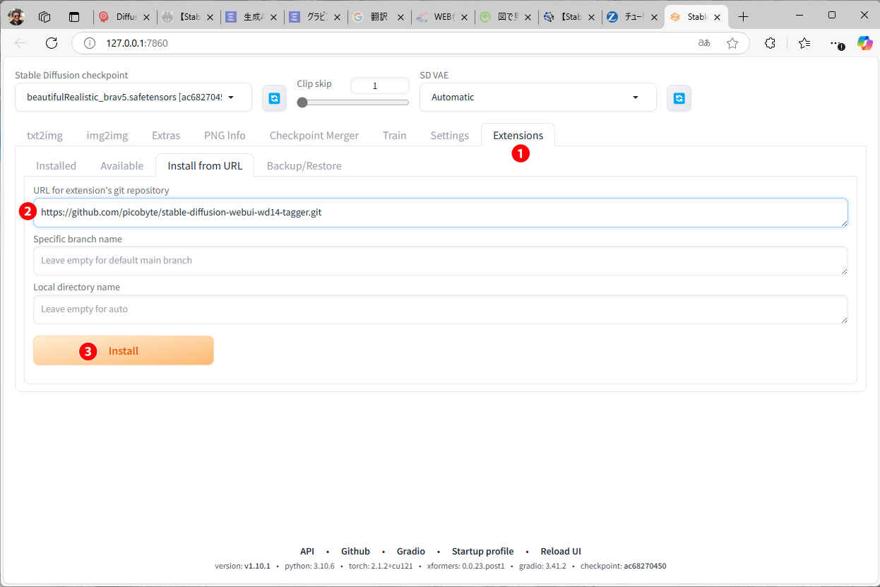 https://github.com/Mikubill/sd-webui-controlnet③「Install」ボタンを押す(※ 時間を要する)