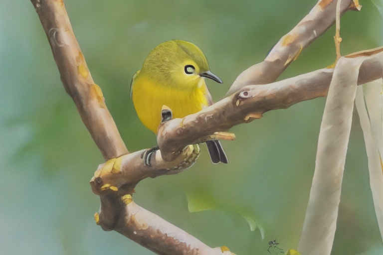 | Prompt | ① White-eye perched on a branch, watercolor painting(枝にとまるメジロ、水彩画) |
