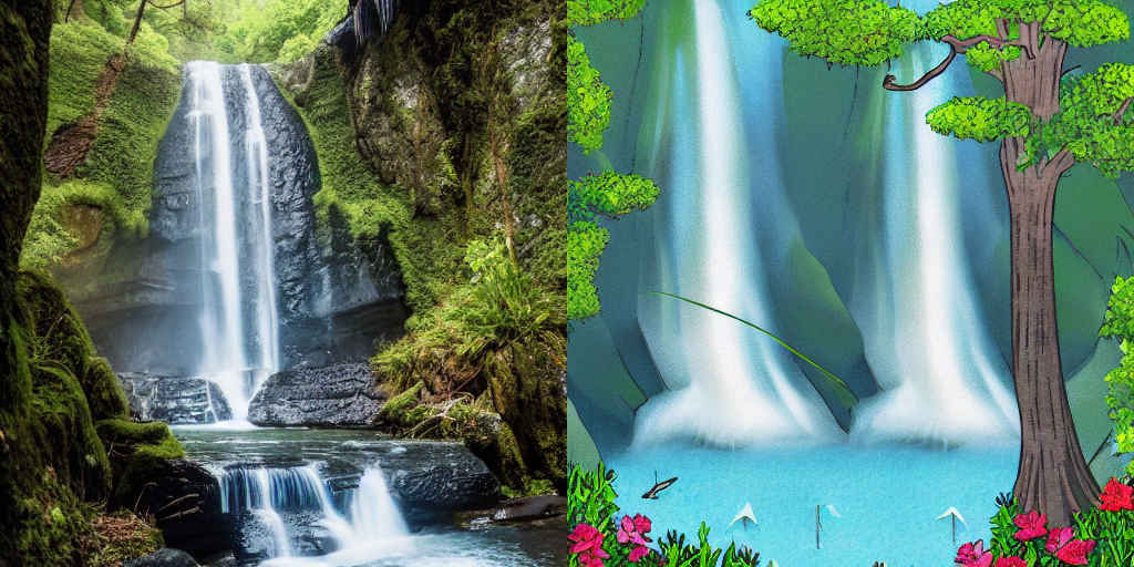 prompt = ["nature and waterfall photography", "nature and waterfall illustration"]