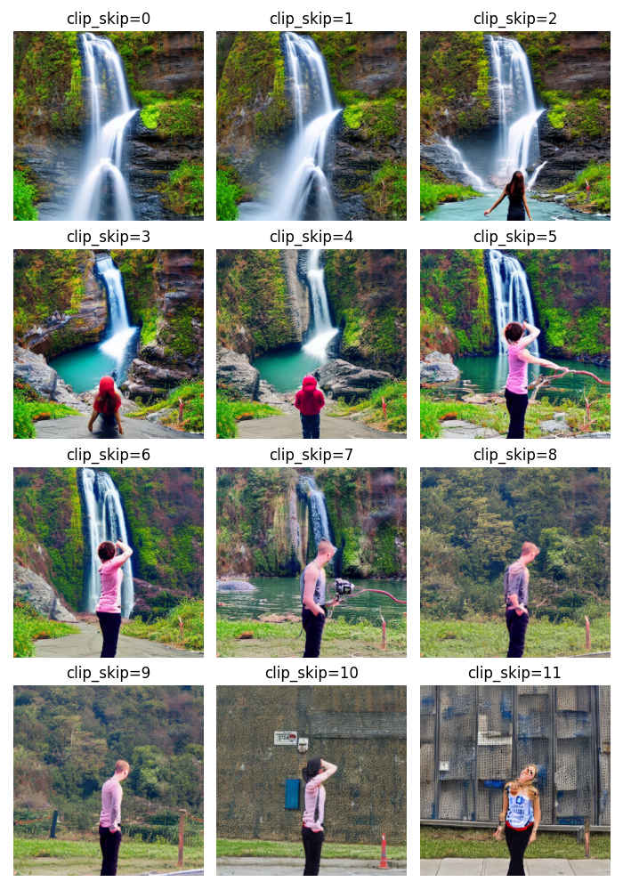 ## sd_010.py「自然と滝の写真」CLIPを飛ばす(clip_skip)