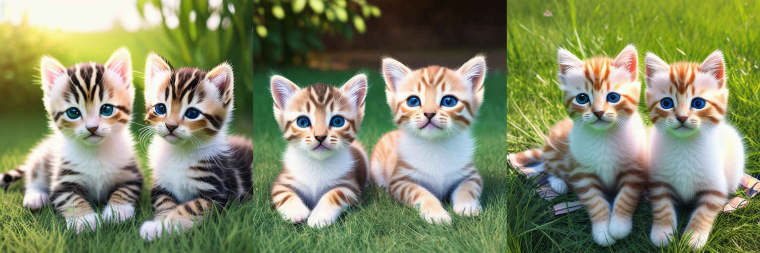 | P2 | (best quality, masterpiece:1.2), (realistic, photo-realistic:1.37), (ultra-detailed:1.2), soft light, two cute kittens sitting on the grass on a sunny day, soft and plush fur, charming and endearing scene |