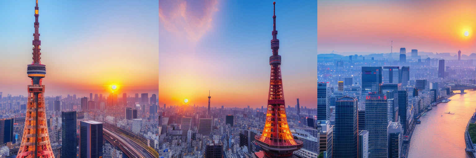 | P3 | (masterpiece, best quality, highres:1.2), (photorealistic:1.37), (ultra-detailed), (realistic lighting), a pink sun setting behingd setting behind tokyo sky tree, natural look, soft focus and bokeh,very breathtaking, realistic, high-definition photography,volume light |